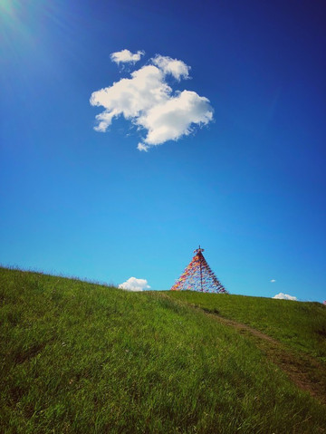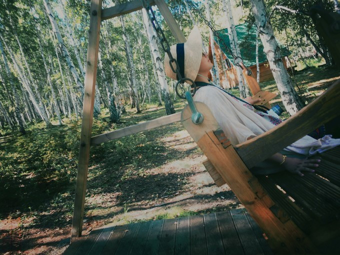 这片大型白桦林里,设置了好些个装置。每个装置所在的地方,都被起好名字强行成为一个景区游览点。我找到了一个秋千椅荡了一会。