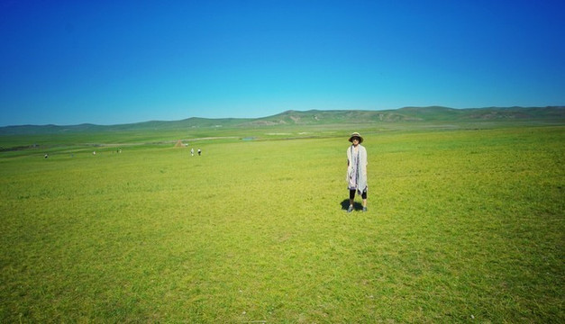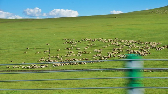 还有肉感的羊群,每只都对草地做着专注的事。真正意义上的草原牧场,全国我见过两大地区的。 新疆阿勒泰 和内蒙 呼伦贝尔 。当然我更偏爱 新疆 的空间上叠的高山牧场,登上一片草场后边的山,山上还有片草场,而山上的山上还有第三片草场,最后云霄深处依旧是草场。 内蒙古 的草场是绵延无尽头的平。视觉丰富度少,但是妈妈说,很爱 内蒙古 这种平缓,线条太温柔了。