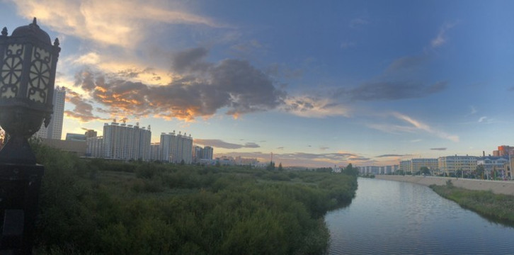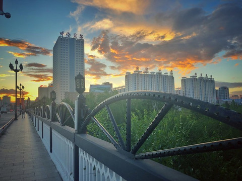 穿过一座横跨 海拉尔 河的大桥,夕阳才正式西下。