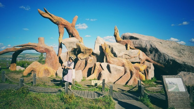 直到行程的最后我才知道,这座塔和远处的两座寺庙为什么而建。原来是因为这座敖包山正对着的是日军当年修建的 海拉尔 地下要塞,那边有个万人坑,埋的都是被胁迫修建要塞的 中国 劳工。在 日本 投降之前,他们大开杀戒,上万人惨死在要塞和敖包山之间的地下。