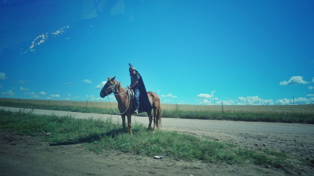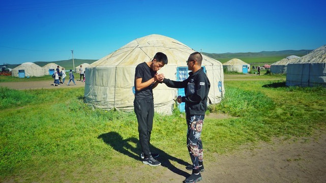 小王带我们开上车,离开了金帐汗草原。送别我们的是穿着牛仔裤的 蒙古 骑兵。
