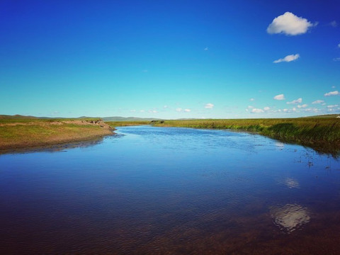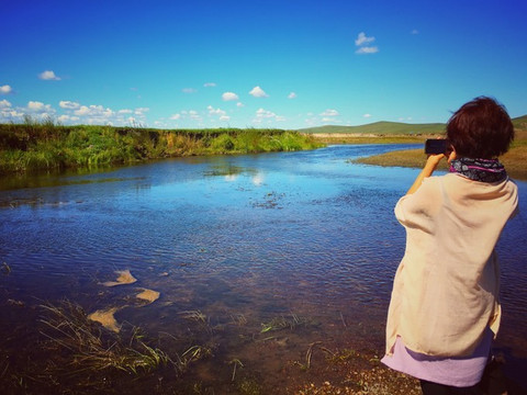 沿途的 根河 ,比天空的蓝色亮一点。