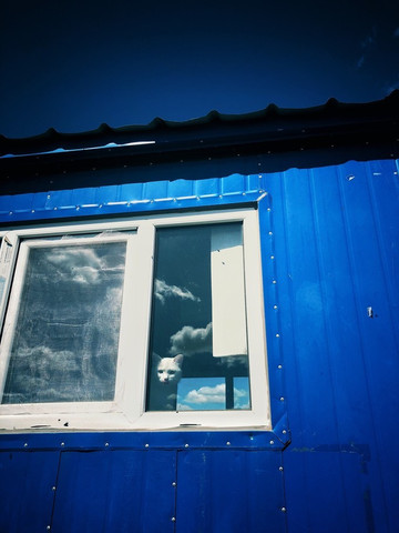 我靠近看着小猫。从玻璃的反射能推断出来,它眼中的我背后是翻涌的白云,它并不知道,窗户的反射也让它身处翻涌的白云之间。我们在彼此眼里都和云在一起。