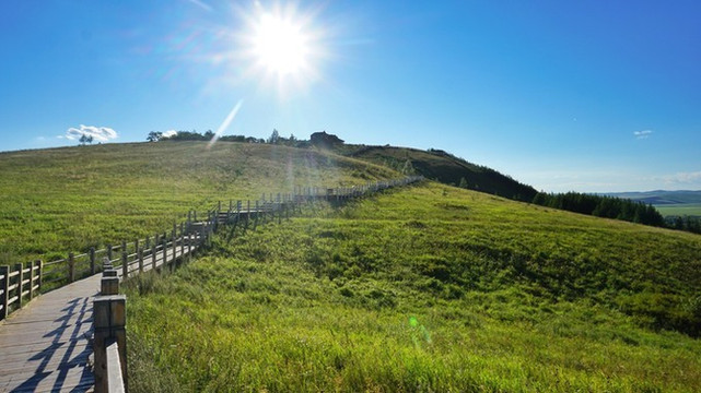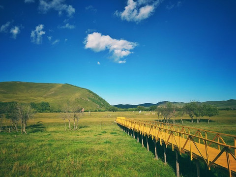 小路另一边是宽广的大草地。这个木栈道能通向远方的靶场。