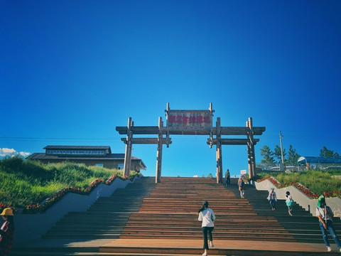 我们终于是登上了这座山的最高峰,这里写着 亚洲 第一湿地。好多景区都有这样模糊的自夸之词。如果说 亚洲 最大xx或者世界最高xx,就很准确。但是第一这个概念就很模糊。