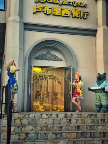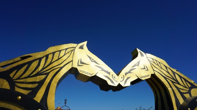 但车子最终还是停在了一个叫金帐汗的部落。大门是两匹马在kiss。不知道为什么做成斑马。