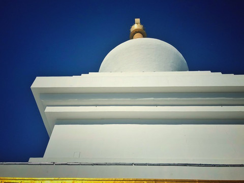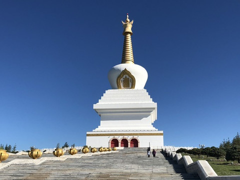 慈积金刚塔建在敖包山上,一层一层台阶走上去。看到它的白肚子,它身边的天空更加深蓝。越来越像藏区了。当时我以为, 海拉尔 实在没有什么可玩的,为建景点而建了这个塔。
