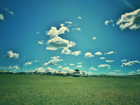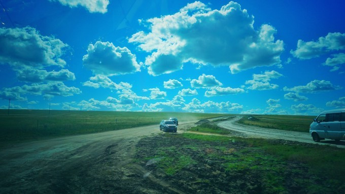 金帐汗草原开车的一路上,天空有点令我失望。云昨天还激情澎湃,可是它早来了一天。今天整片天空空空如也。
