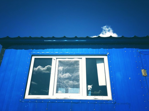 如果说这一年有多少美丽瞬间值得铭记,这个小猫和蓝色铁皮房子的美可以说是最特别的一瞬间。