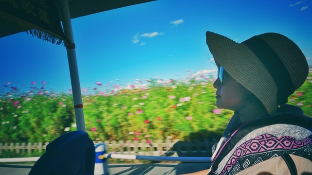 最初我和妈妈挺害怕。于是沉默大于欢喜坐上了车开启行程。