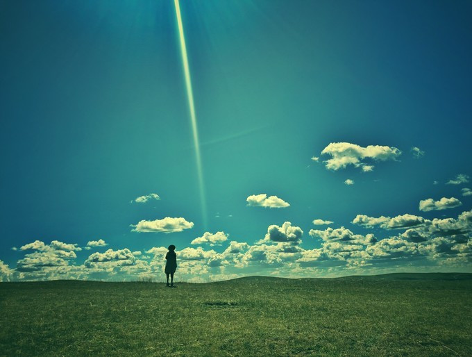 一朵小云带我逛草原。在此刻,我想通了为什么喜欢草原,它究竟是什么在召唤我。除了遥远童话的印记之外。草原吸引我的是一种时光凝滞感。空茫大地,云来云往,你细细留意光影的变化时,它走得很慢,只有你不留意它时,它才会找机会飞逝。所以,草原适合时间静止,甚至时光倒流。你看着云,看着看着,你就变回了曾经的那个久违的孩子。