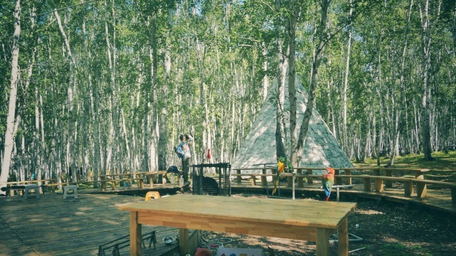 白桦林小王把我们送到景区大门口就开车回去找包了。我们就踏踏实实地坐上新的接驳车等着往景区里开。今天要去的这个地方是白桦林。白桦林是我曾经想象过的碰见驯鹿的地方。