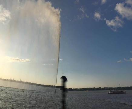 在 哈尔滨 的时候也出过类似的情况,也是水边,也是照片照出了问题。那个大水柱表演时,拍下了一张空间折叠,还有不明黑影闪过的照片。