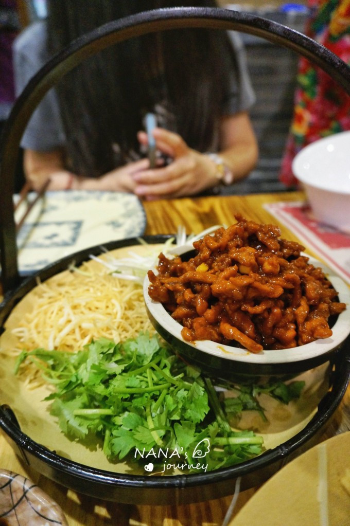 不得不说,春饼从外形上和 北京 烤鸭的饼真的太像了,不过在北方,春饼真的是万物皆可包。吃春饼是 东北 立春饮食习俗,而装满饼和食材的也叫春盘,京酱肉丝是必点的食材,更有北方的风味了!