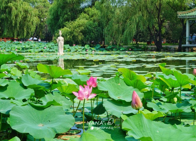 如果从北陵公园的南门进入,就要穿过北陵公园面积最大的公园部分,夏日炎炎荷花盛开,很多当地人在这里纳凉聊天,也是城市里的休闲好去处呀,一边感受当地人的生活一边慢慢向昭陵深处走去。