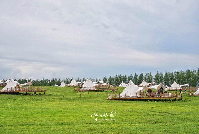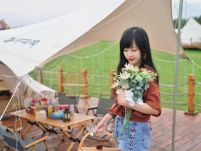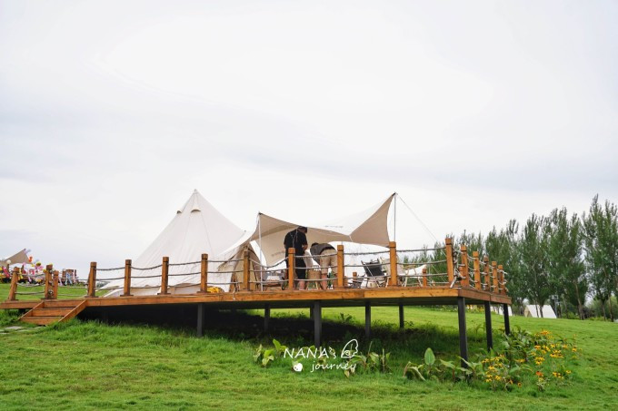 我们选的露营帐篷是这种帐篷+天幕的组合,真的很适合朋友小聚玩耍的,拍照也非常好看。这种可爱的帐篷遍布在露营地的山坡之上,一眼望去,不少都是庆生或年轻人的聚会~