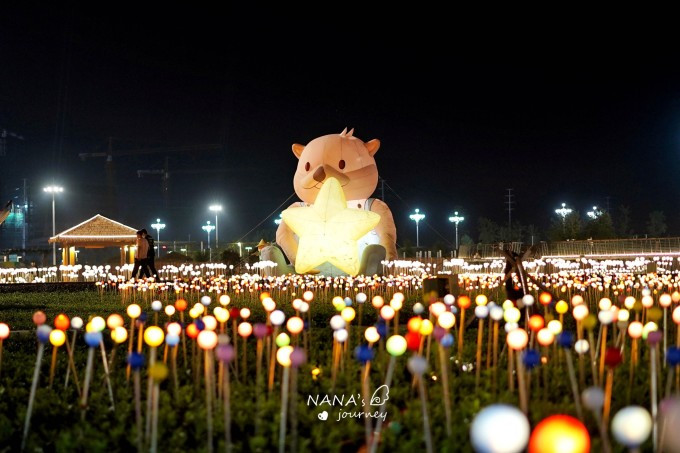 星光花海的灯在6点左右便会开启,当天微微暗的时候,是和星光花海合照的最佳时机哦。