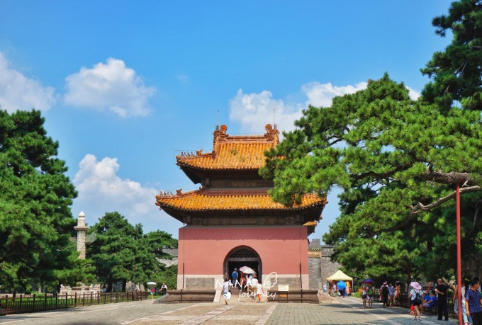 中国 宫殿建筑、陵墓建筑都遵循中轴线两侧对称排列,遵循前朝后寝,中轴线依次是石牌坊、正红门、隆恩门、隆恩殿(主殿)、陵墓主体……