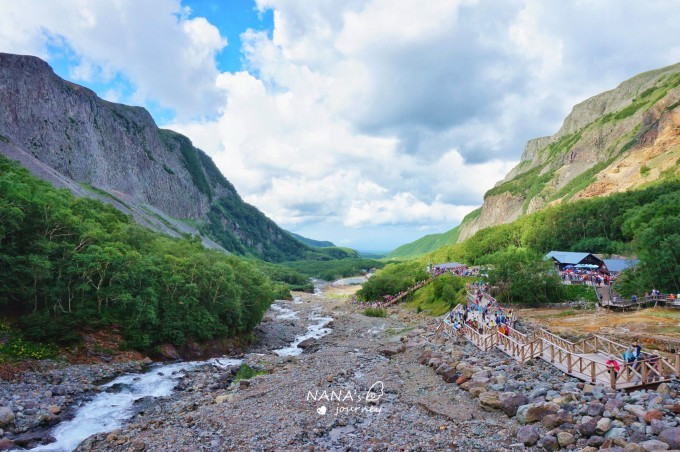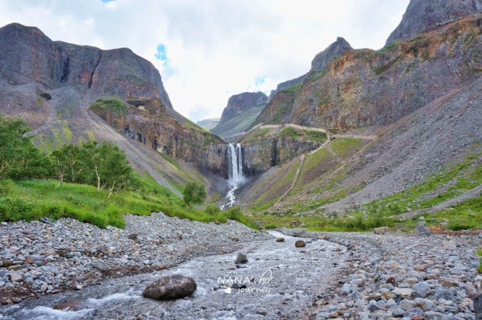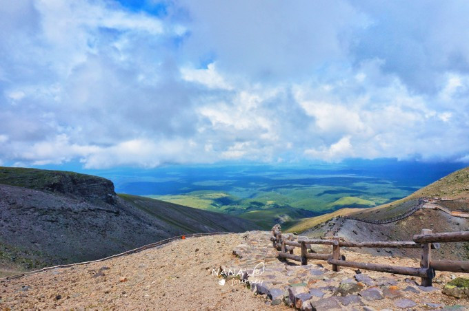长白山 的夏天总是阴雨不定,明明前一秒阳光高照,后一秒就倾盆大雨。乘着景区大巴一路而上,天上的乌云越来越厚,着实担心不已。车站下来后,还要沿着山坡的步行道爬1440个台阶才能到达,狂风四作的崩溃,和灰沉的天气,真怕下一秒就开始大暴雨!