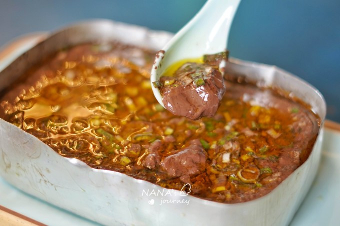 蒸血糕,也能叫血羹,就是鲜猪血加水蒸制的。如果喜欢吃猪血的,一定会喜欢这种如同蛋羹一般的柔嫩口感,入口即化。