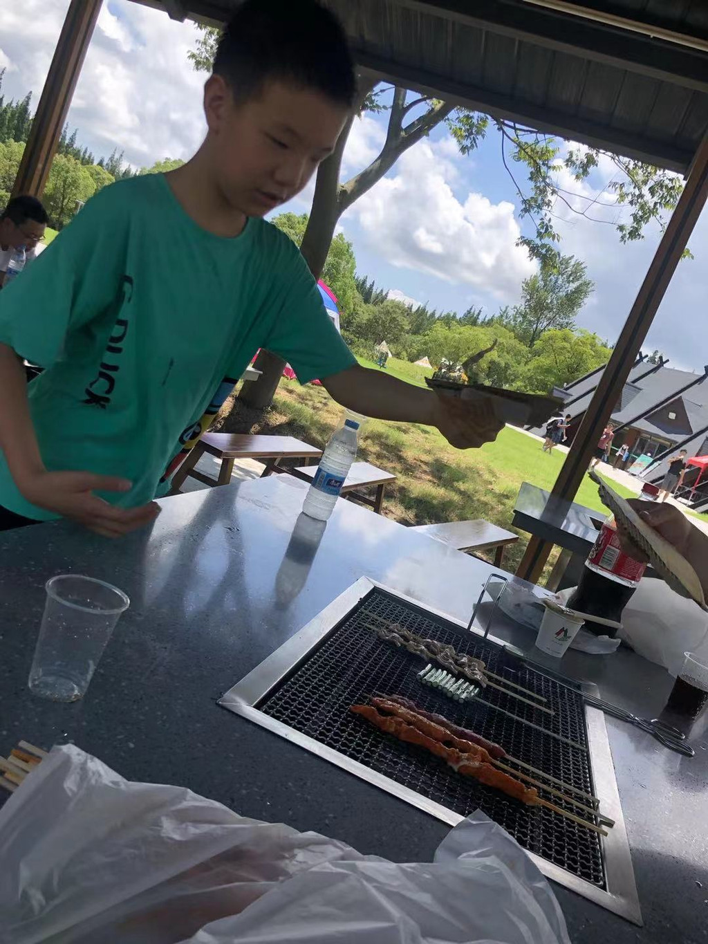 午饭,当然是烧烤啦,本以为这么热的天不会有人去烧烤,没想到仍旧有那么2-3桌。这个烧烤让我怎么评价呢,景区的价格本就无法以正常店家来衡量,品种不算多,但你知道的烧烤品类基本都有,饮料也相对齐全,作料也会配给你,但是你想问他们要任何一样东西,比如:一次性杯子,烤肉夹,都会回答你一句话,请付钱。好吧,带孩子出来,开心最重要,小钱不计较,大钱不要想。