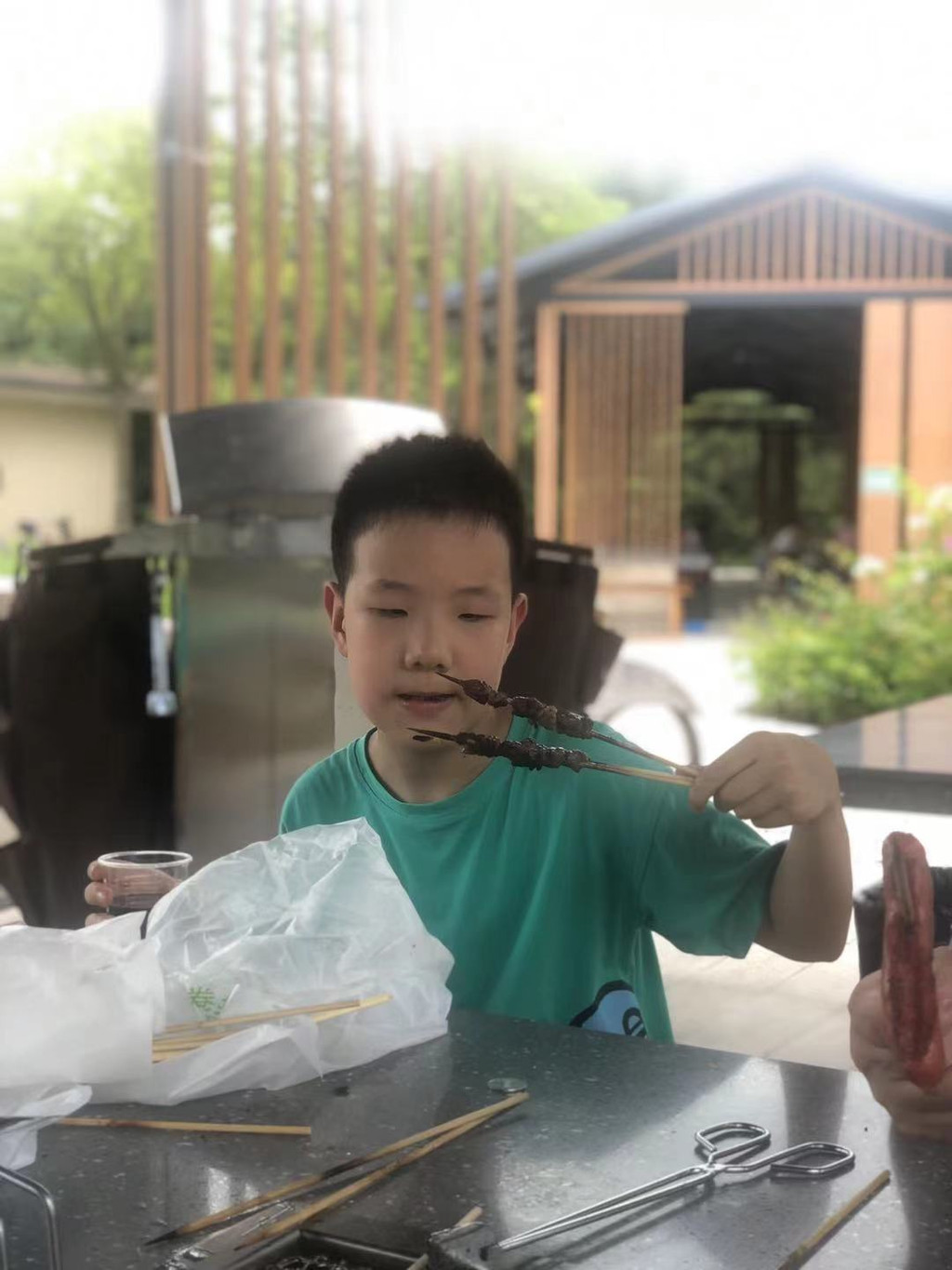 大宝就像买买提,肉都是他烤,我和小宝吃现成的,熟不熟不知道,但肯定能吃,哈哈,小宝考得也很欢乐