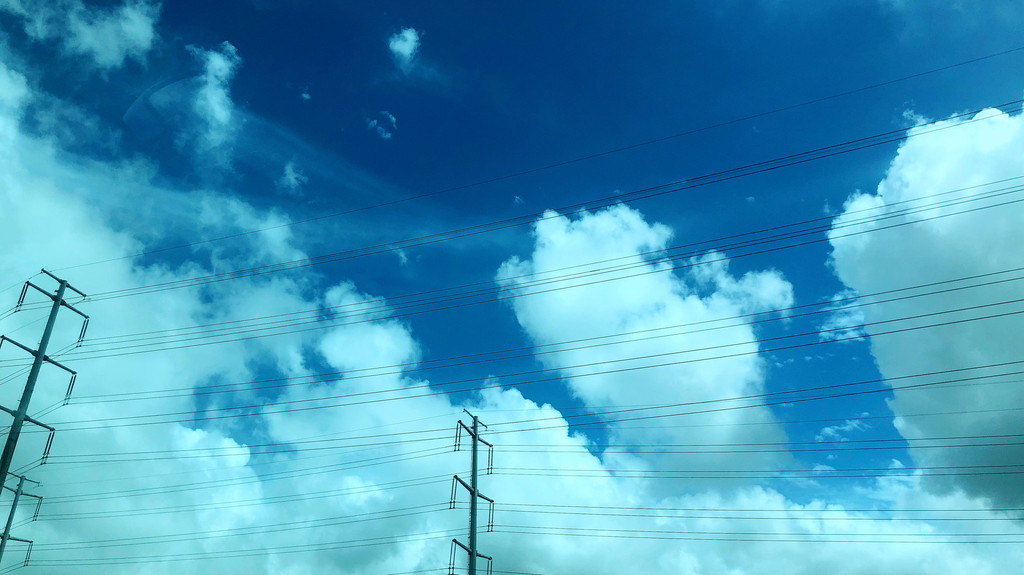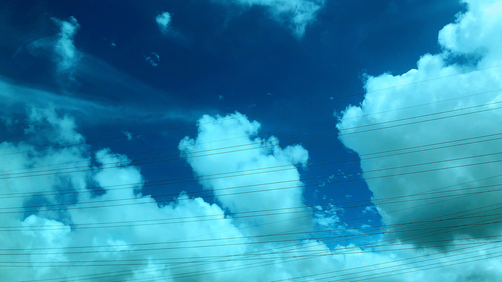 隔着车窗随手一拍,天蓝云白,不上班的心情就是那么的好~