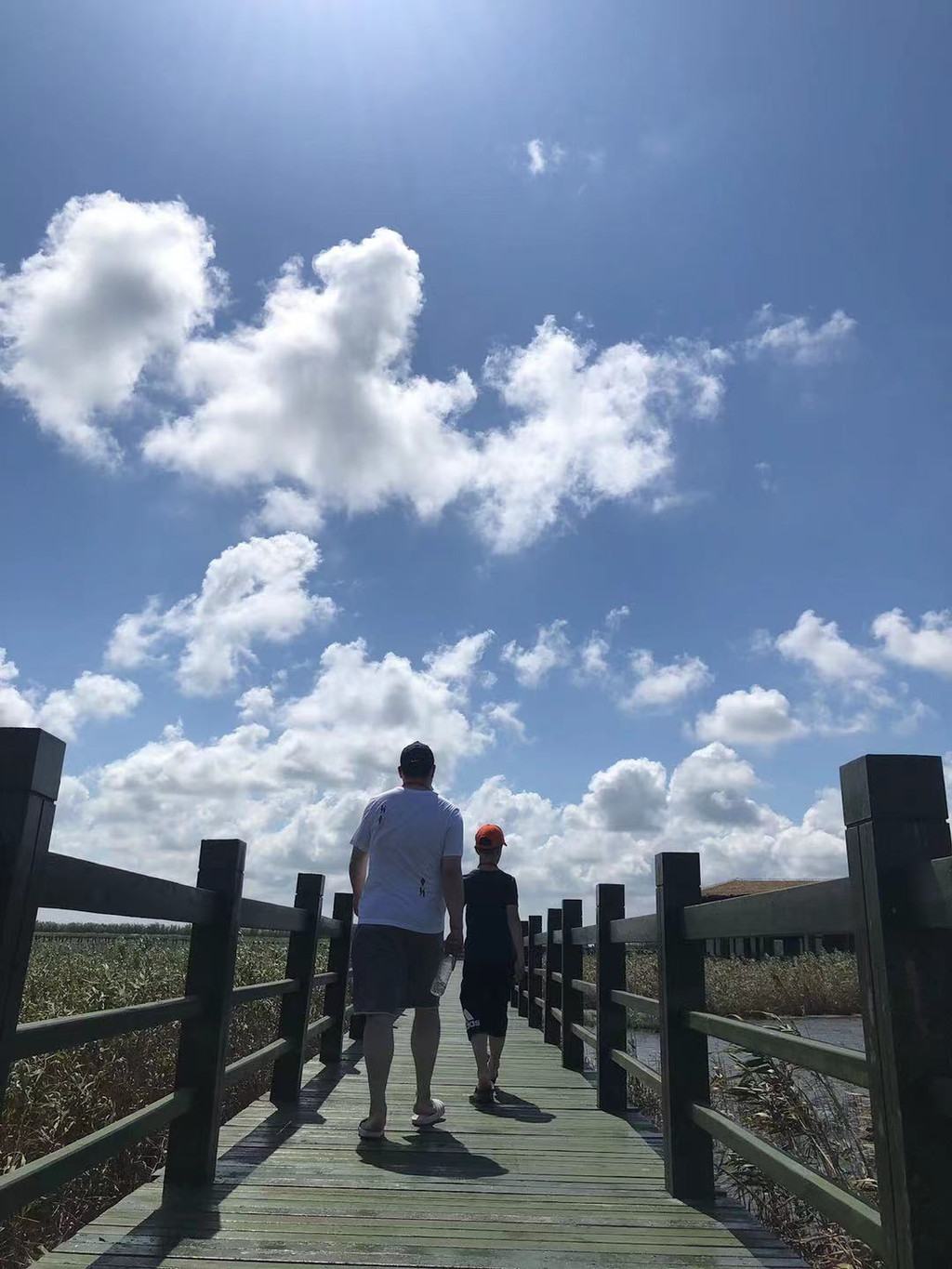 第三天,去哪里呢?湿地?但是挺远的,但来都来了,大宝开车,看地图是横穿崇民岛了,大概1.5小时,到了湿地公园,都是人,信号也没有,也没啥好看的,只能收拾收拾返程回上海,这时遇到好些工作人员,告诉我们带孩子来,可以去旁边鸟类保护区,人少景美还能涨知识,这么诱惑人的地方怎能错过。