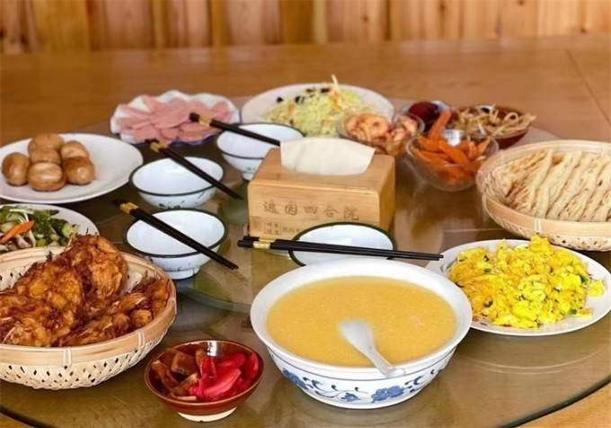 餐厅可以容纳30人左右,午餐选择挺丰富,提供早餐,中午饭,晚饭,家常炒菜,海鲜,铁锅炖,酒水都有,为宾客带来难忘的美食体验。