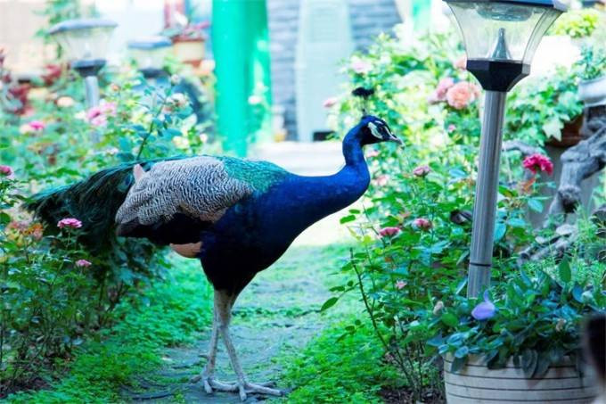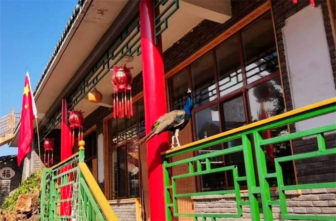 亮点特色:院内挂着整齐的大红灯笼,如同电影镜头中的一样。可以想象,晚上大红灯笼一点亮,将会是多么喜庆的画面。还有各式的花草,构成了一幅有趣的庭院图景,院子大概有500多平米,可以举办活动。特别的是民宿还有养有孔雀、鸽子、珍珠鸡!特别是孔雀开屏时羽毛就会像扇子一样打开,阳光下有五色斑斓的金翠线纹路,甚是好看,还能给它们喂食,和它们做朋友。