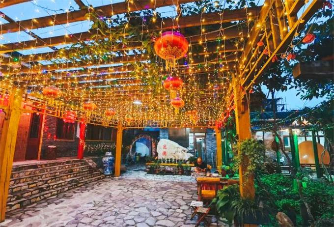 你能看见5米长的彩灯,由各式小灯组成,在这里,生活没有标准答案,按自己的节奏来呗,乡村生活,大人追求的是放松身心。对于闲不住的小孩儿,难得过上的乡村生活,就要尽情地撒欢儿,放飞自我。浓厚的历史文化气息,让这座院子仿佛被注入了生命一般。