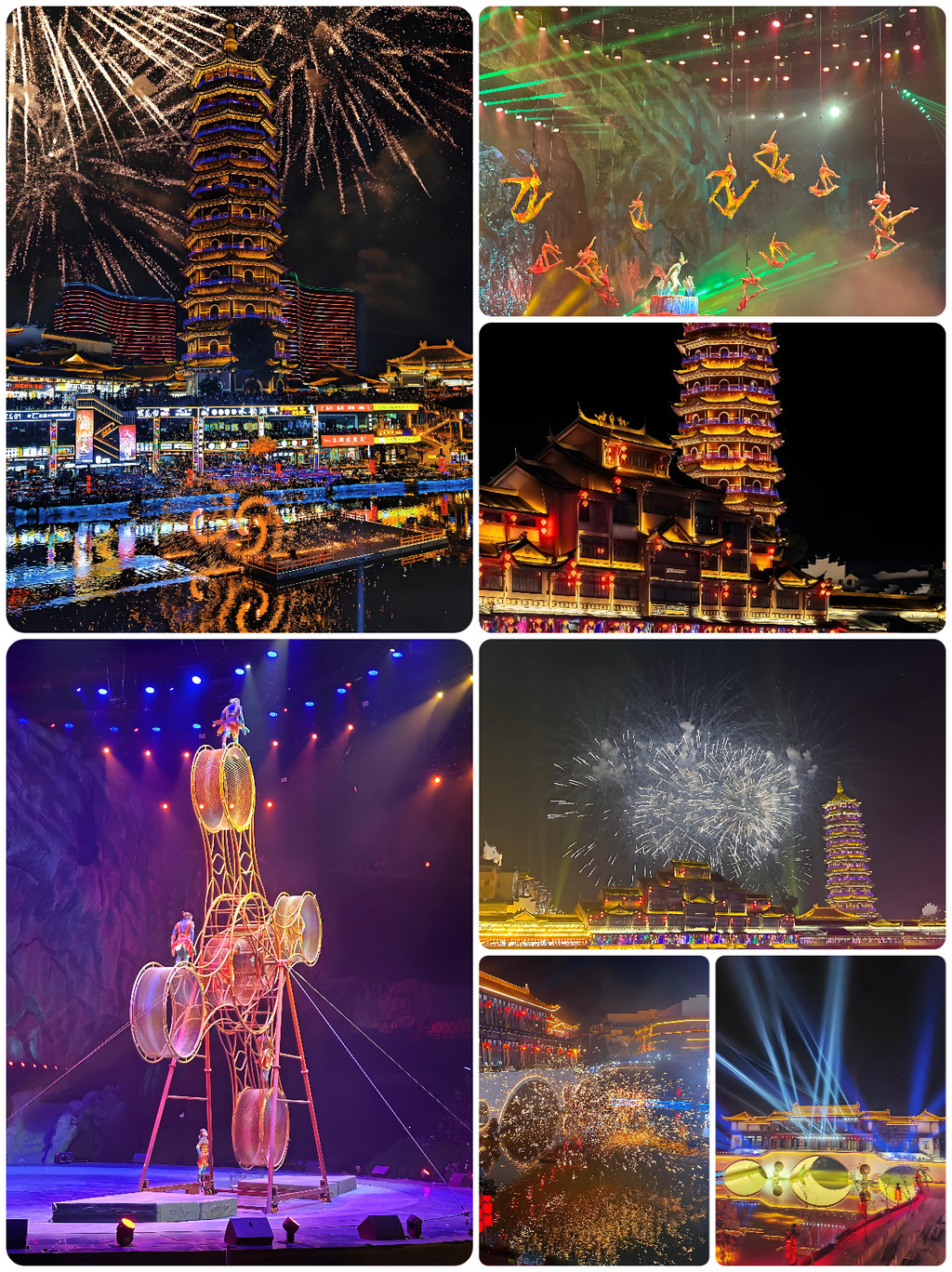 晚上夜游太湖古镇,看非遗打铁花+高空烟花表演