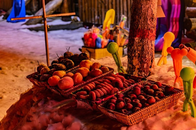 晚上广场灯火秀不错,这里的山货特产也是性价比高,整体雪谷做生意的都很实在。运气好会有篝火晚会,记得要跟着一起跳。