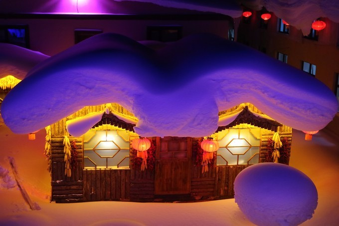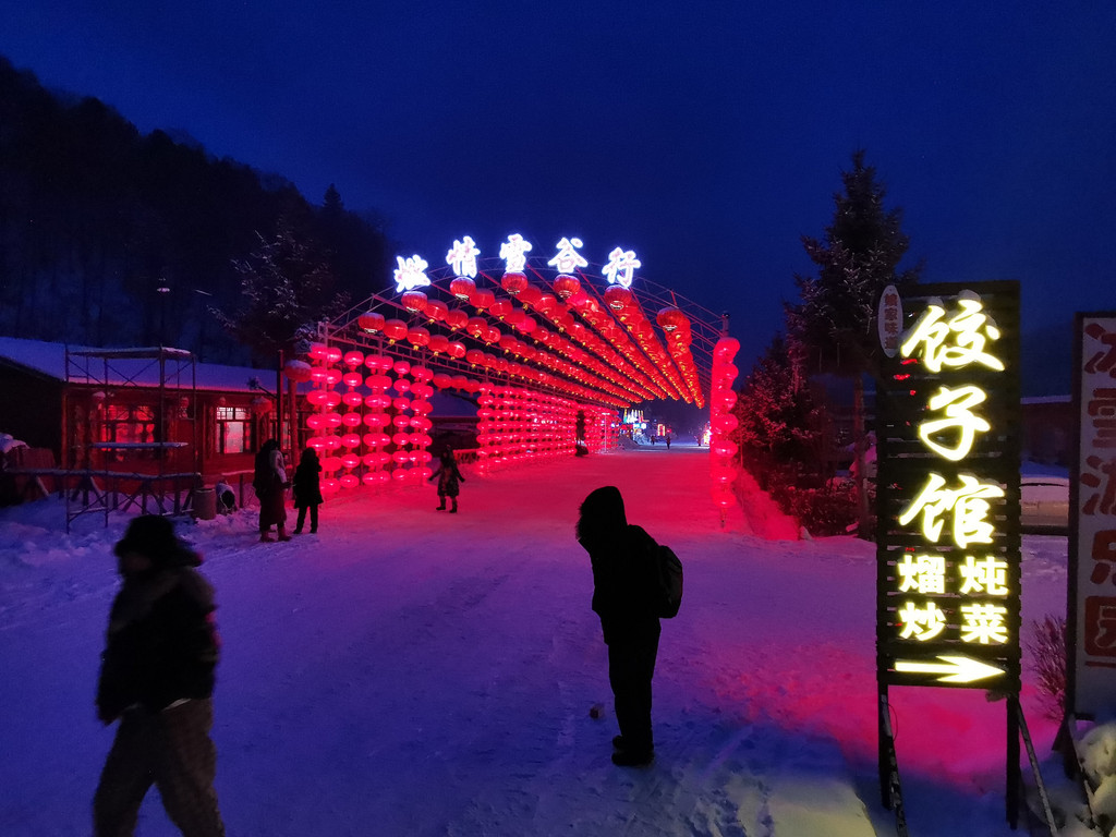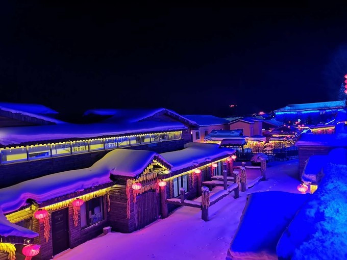 中午入驻雪乡,说一下这里的夜色,总结三个字:美!美!美!