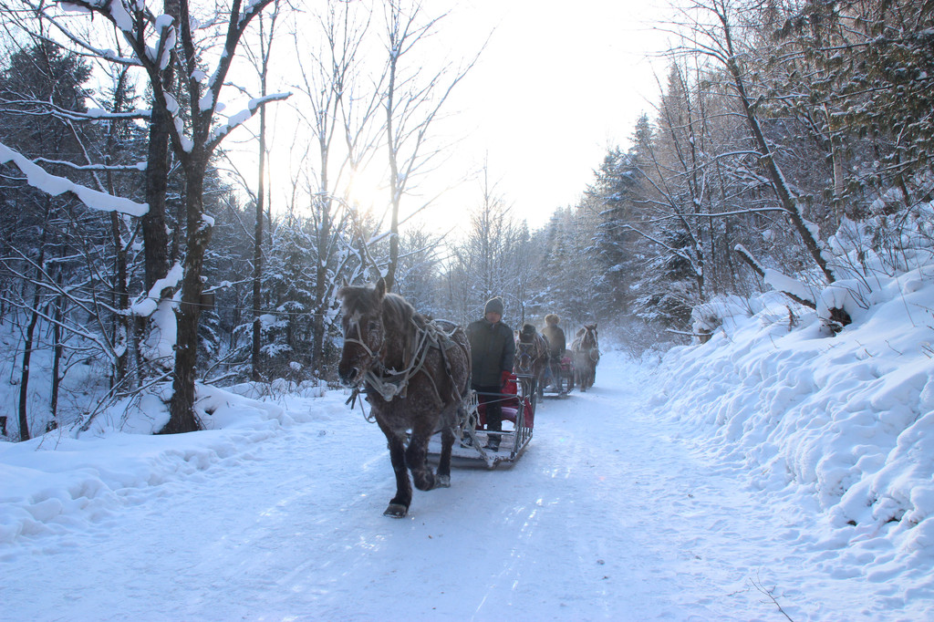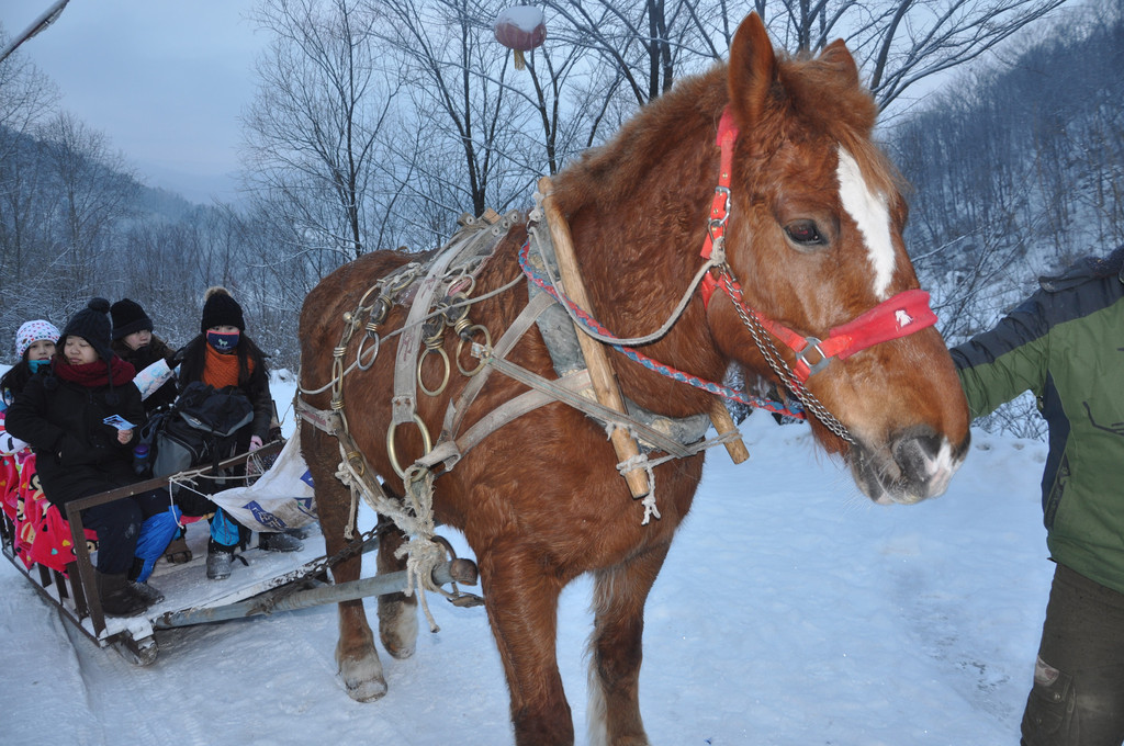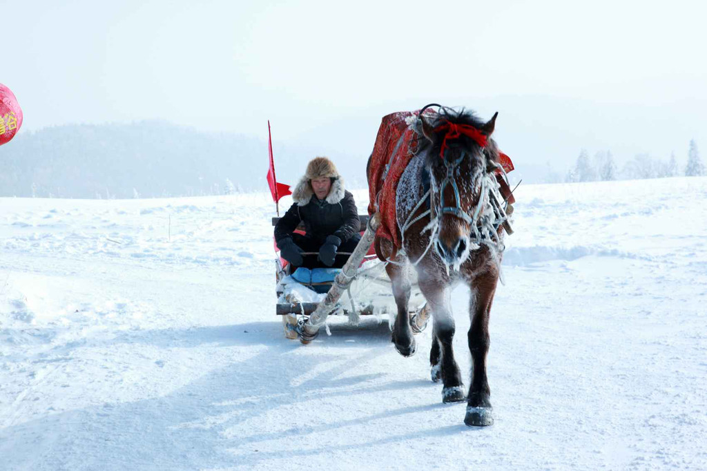 第三天早上7点-8点是穿越雪乡的时间。跟着大部队爬山15公里,我自己知道体力不好,提前订了马车,叮叮当当的一路很顺利。
