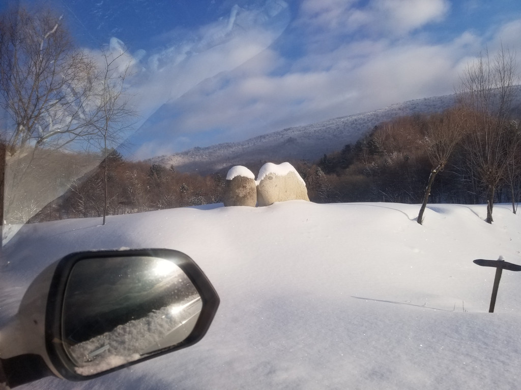 行李提前一天让老板托运到雪乡,自己去雪乡山门取。外地车不能进去里面,所以取行李要花寄存的钱。