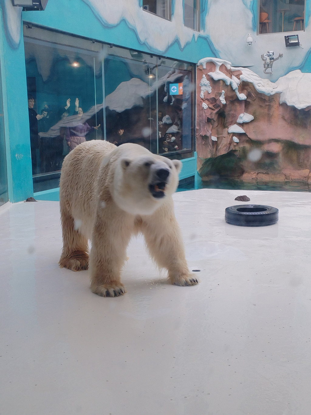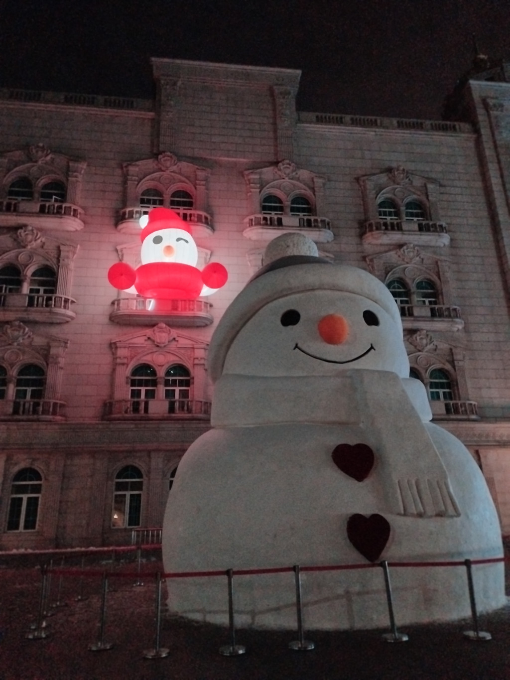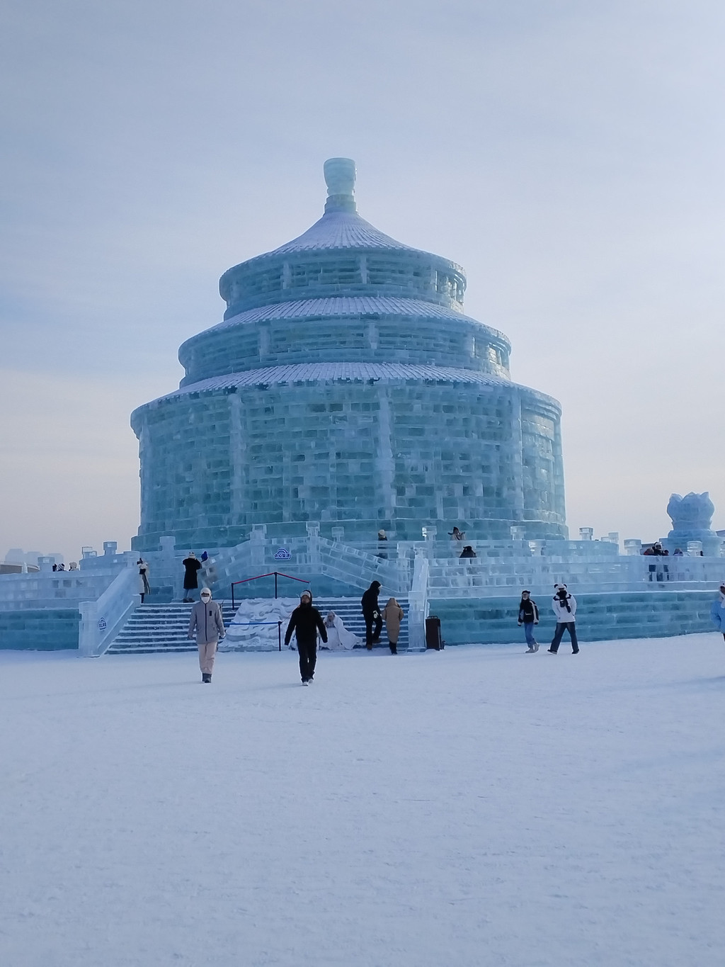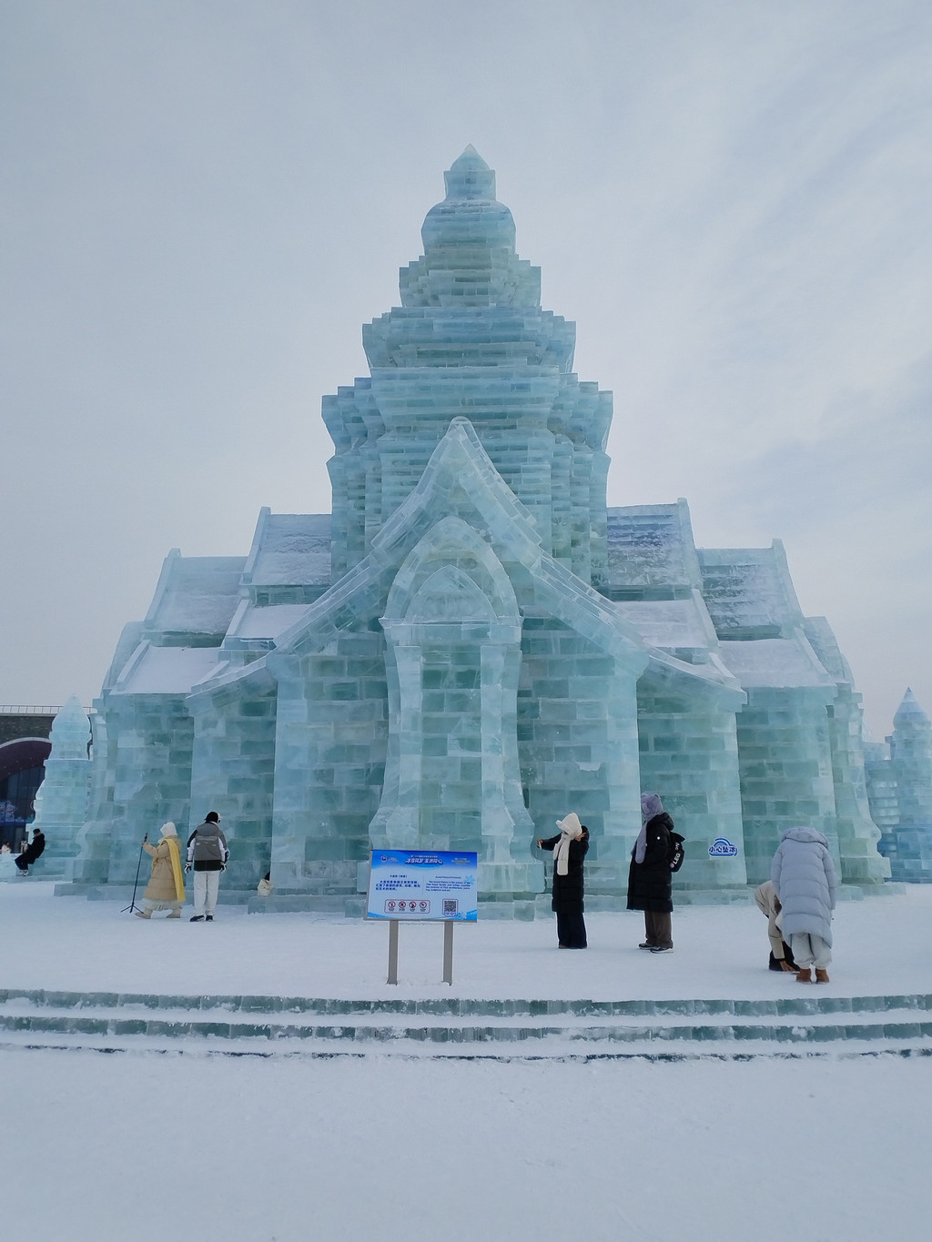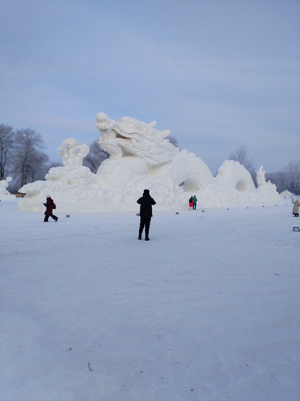 阿李在哈尔滨游玩了六天,去了索菲亚大教堂、中央大街、省博物馆、太阳岛雪博会、哈尔滨极地公园、哈药六版画博物馆、冰雪大世界、东北虎林园、哈尔滨大剧院、结冰的松花江、兆麟公园等。在这几天里,尔滨只在一个早上飘了一会儿雪,其余时间都是晴天。室内都有暖气,温度有二十几度,工作人员都穿得单薄,可怜我们这些穿得厚厚的人热得不行——在极地公园里,阿李和其他游客都热得脱下羽绒服,把它抱在手里。回到酒店的第一件事,就是脱掉厚衣服。