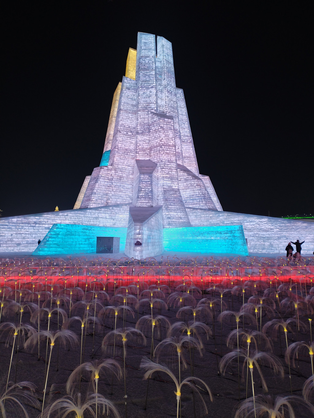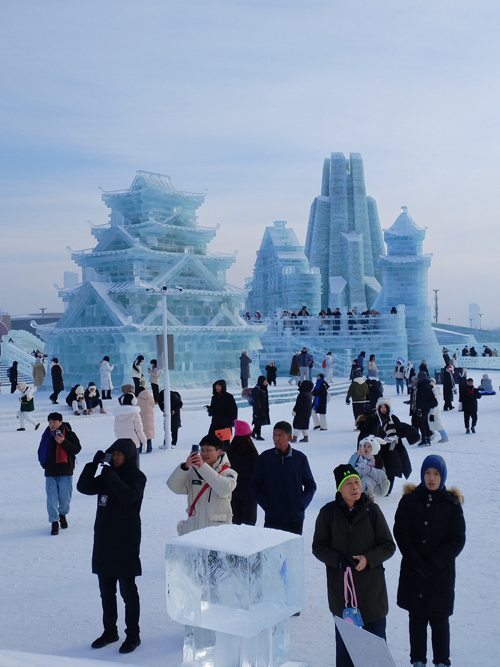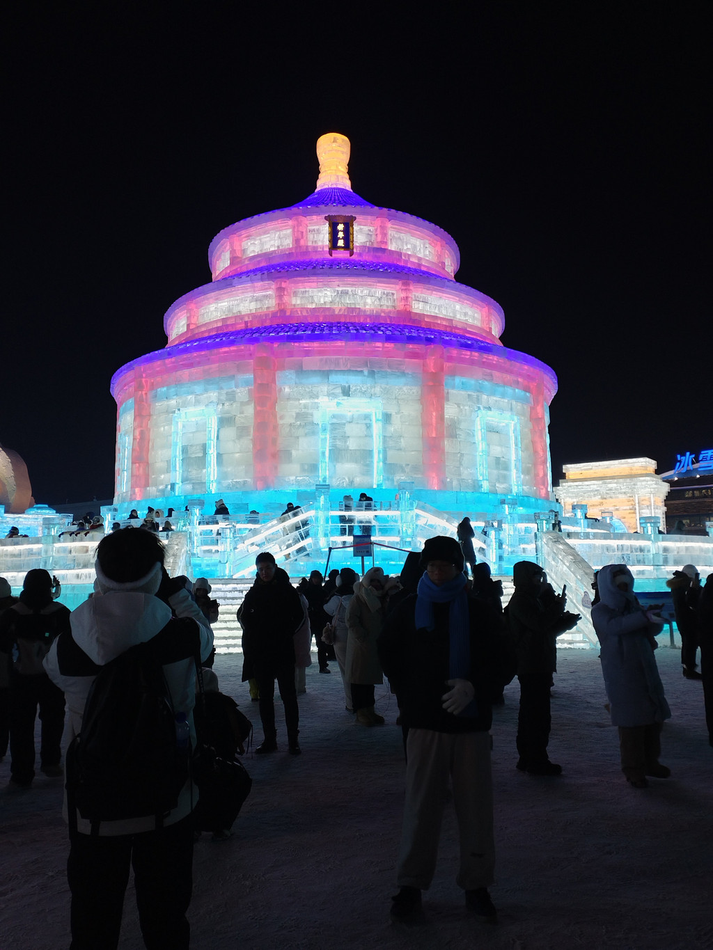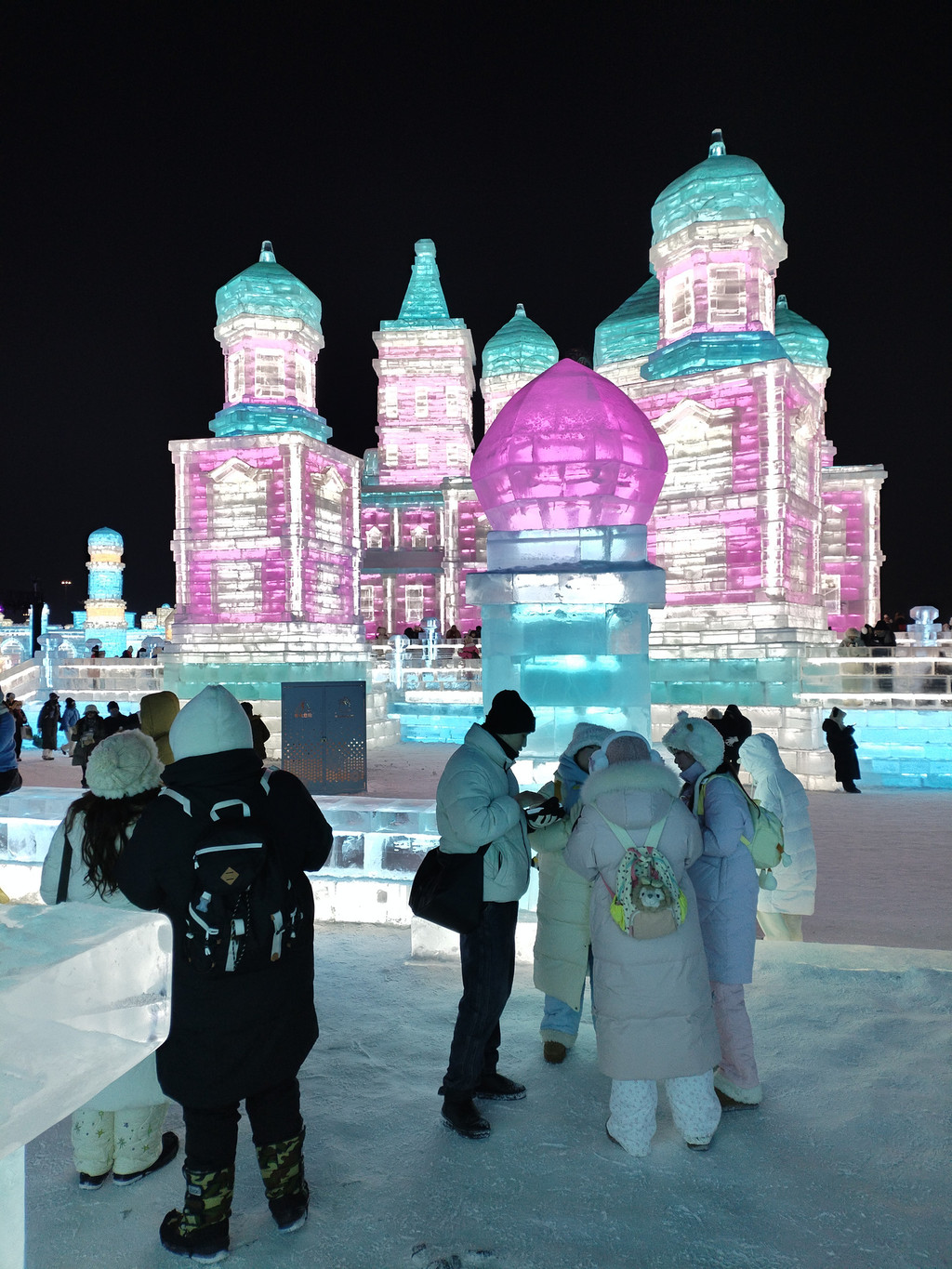 阿李能在冰雪大世界里从中午一直逛到天黑——冬日的尔滨下午四点多就天黑了,既看到了阳光下的冰雕晶莹清纯,又看到了彩灯下的冰雕梦幻多情,暖宝宝功不可没啊!当然,冰雪大世界里的大滑梯和摩天轮,阿李并没有因为有暖宝宝而玩上:一是手速不够快,预约不上;二是即使预约上了,排队也要很长时间,阿李等不起哦。