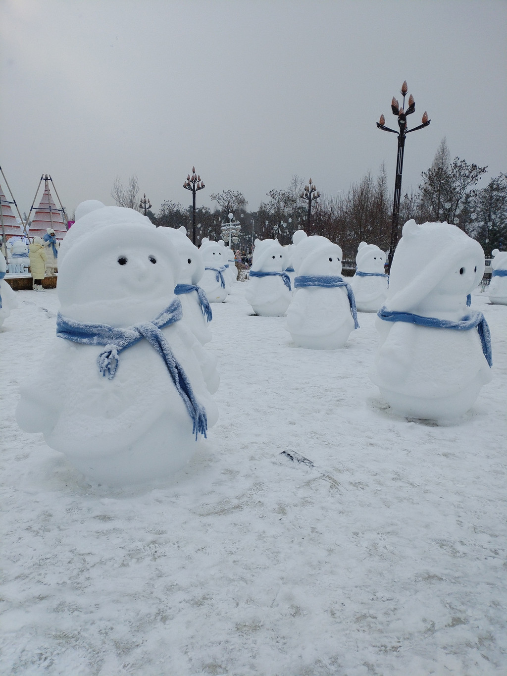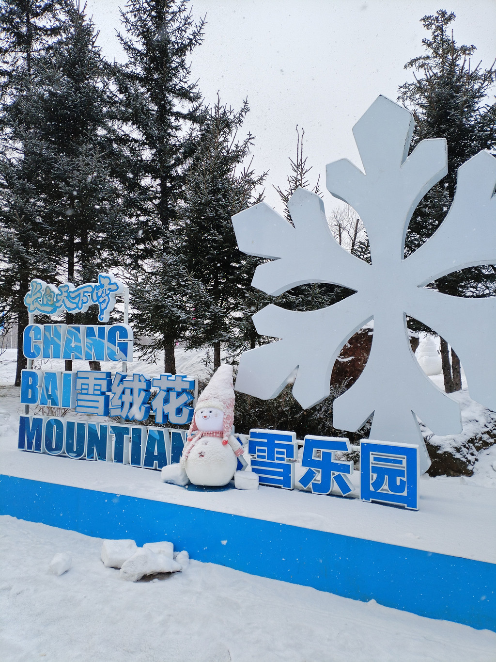 长白山去不了,我们就去了长白山下的雪绒花雪乐园。那里有用冰做成的冰心岛,有无数的围着围巾的可爱雪娃娃,有数座供游客滑雪的雪山,还有驯鹿园等等。因为长白山景区的关闭,那天雪绒花雪乐园的游客特别多,到处都是欢声笑语。几座雪山都是滑雪的人,那里的笑声最多。