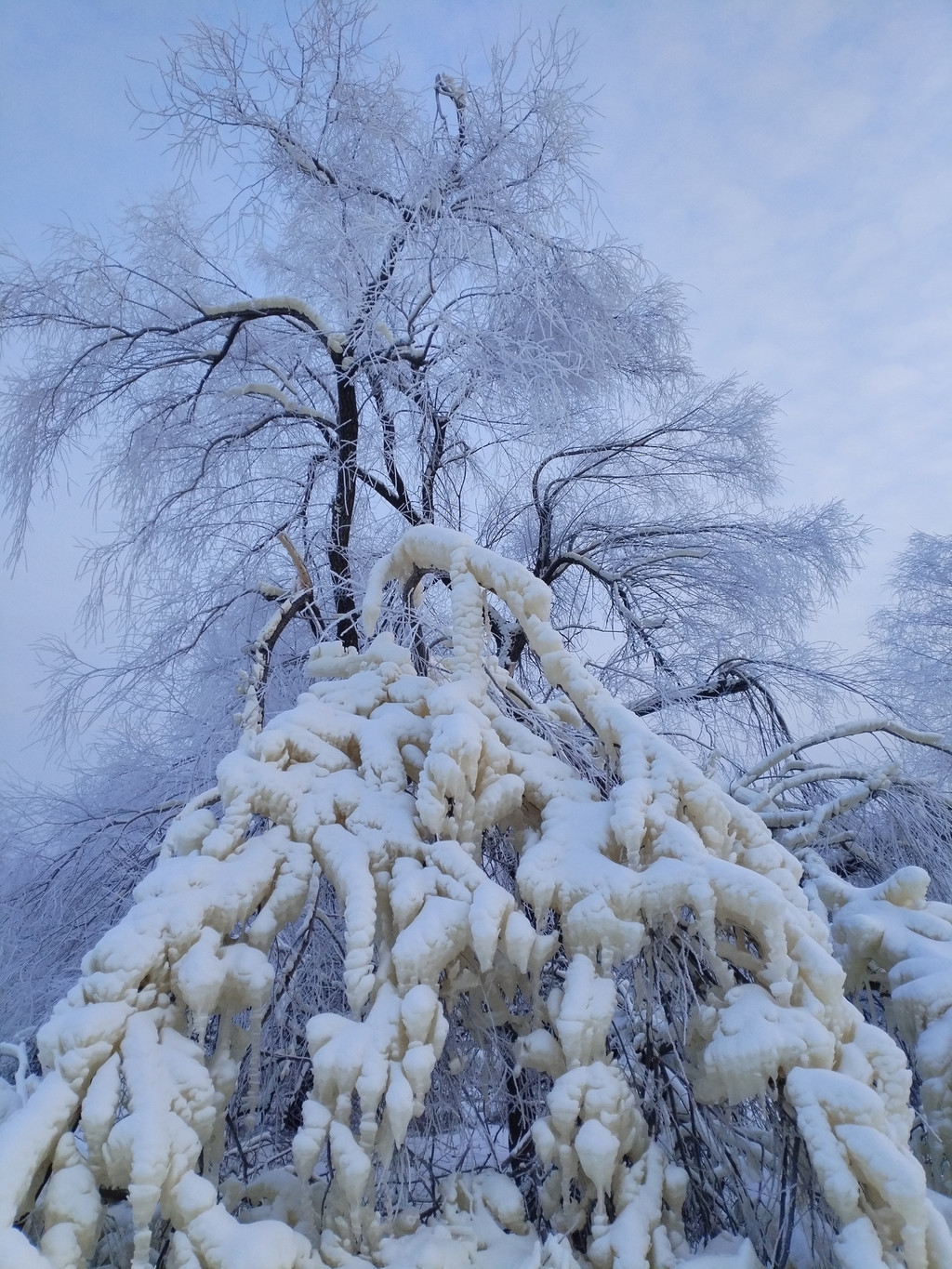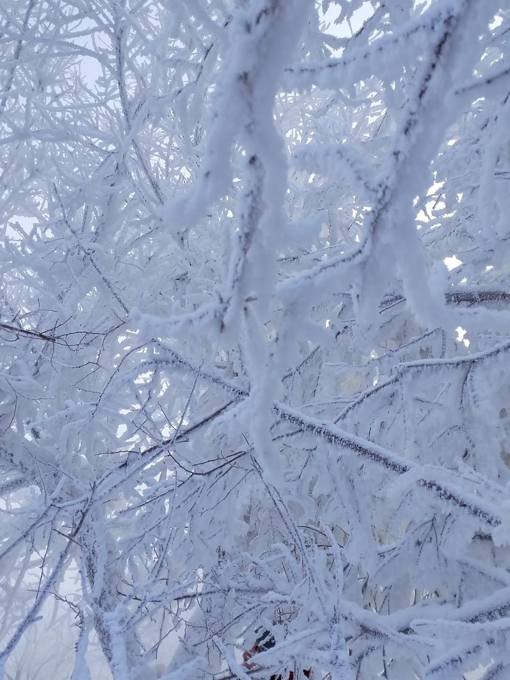 事实上,要看到雾凇美景绝非易事,因为雾凇的形成必须要满足三个条件:气温要在零下15摄氏度以下,水汽必须充足,不能有大风。我们的运气非常好,在大泉河魔界漂流时看到了美丽的雾凇,在雾凇岛又看到了更美的雾凇。可见,吉林雾凇对我们这些南方老土豆十分友好。