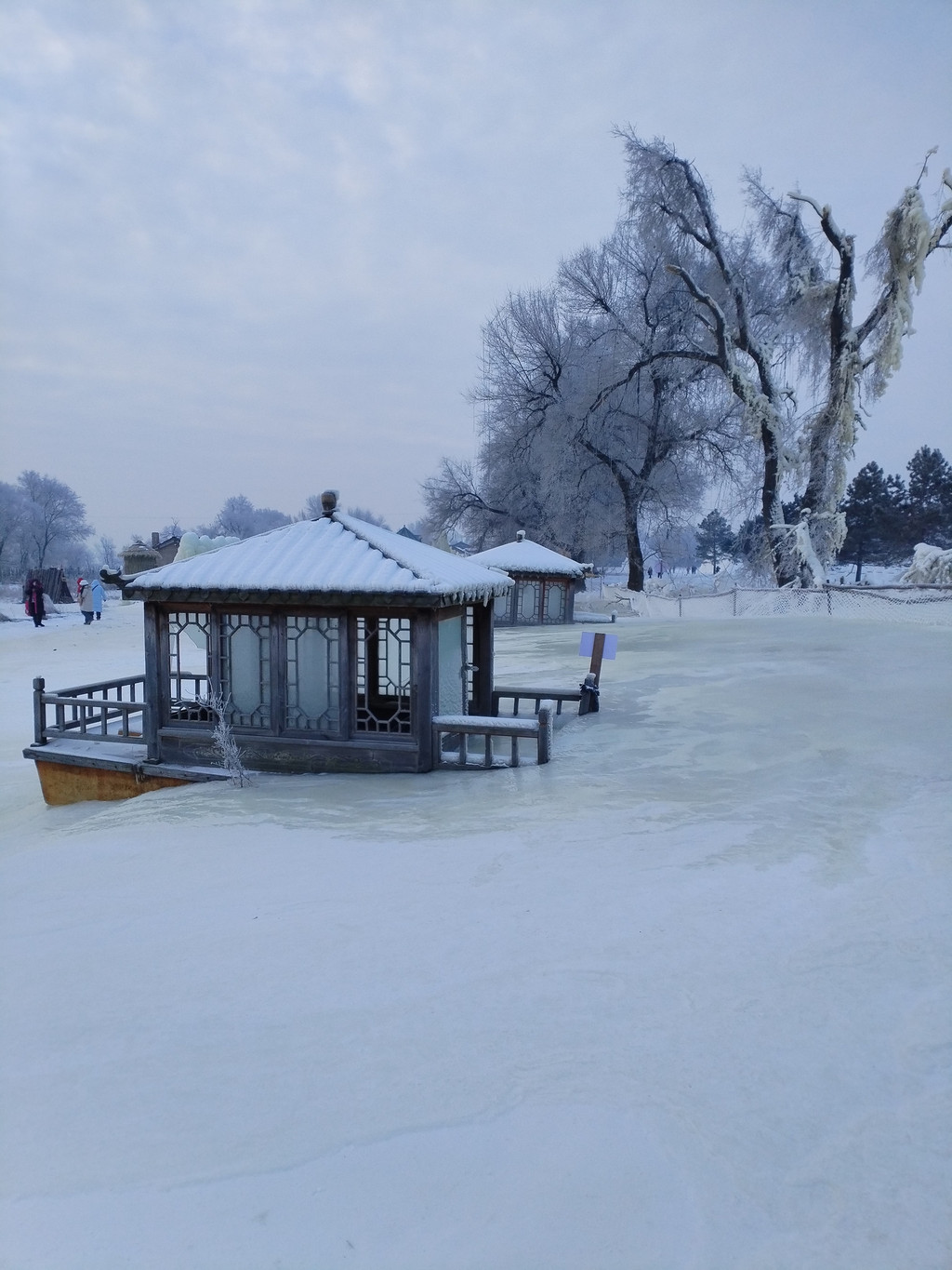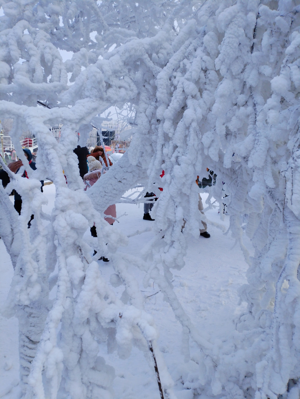 我们清晨七点就到了雾凇岛游客服务中心——看雾凇越早越好,因为太阳出来后,树上凝结的冰晶会逐渐掉落。买好了门票,跨过松花江,登上雾凇岛,眼前洁白的童话世界让我们赞叹不已。岛上平时应该有很多种树,但我们现在只看到了一种树,那就是玉树!岛上平时应该有很多种花,但我们现在只看到了一种花,那就是琼花!岛上不仅有雾凇奇观,还有大型的冰雕和雪雕,还有乌拉历史文化展馆,还有当地村民的歌舞表演。这一切,让我们这些南方老土豆目不暇接、流连忘返!