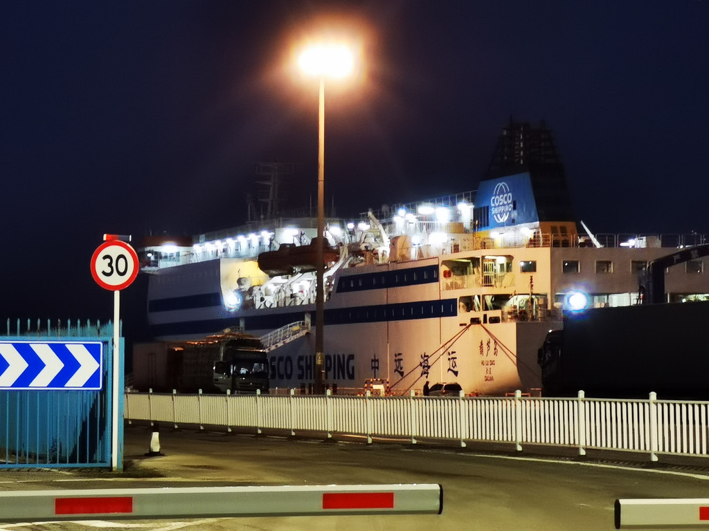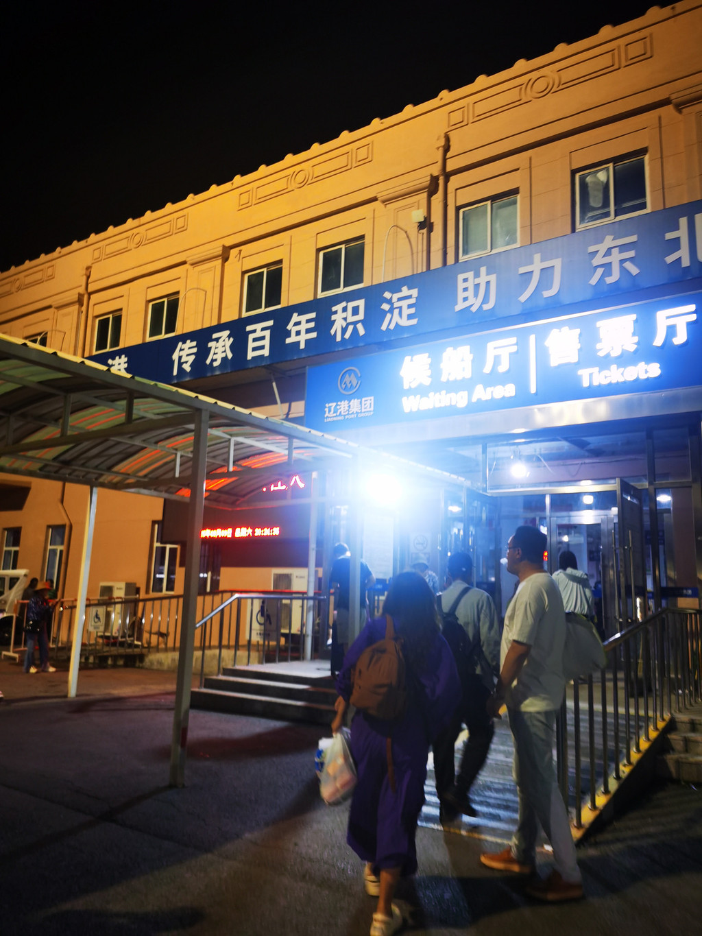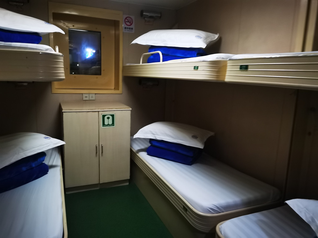 八点多工作人员开始逐个告诉车辆哪些物品禁止带上船,我们的两个气罐只能舍弃。每辆车只能留一名司机开着车登船,其他的人员坐轮渡安排的大巴车去往换票的3号门,20:40检票再次乘坐另外的大巴车沿16区港入内来到船下,沿旋梯登船。上船后手机信号全无,从这时开始我和司机断联。按照船票找到自己的舱室,老老实实等待,九点多胖子也开车上船,找到了我们的舱室汽笛声响起,轮渡缓缓驶离大连港。回望大连的海岸线,灯火渐渐模糊成一片光斑;向前望去,漆黑的海面只有浪花泛着微光。躺在床上,听着海浪拍打船身的声音,偶尔有同船的游客轻声聊天,这份宁静与期待交织在一起,让人忍不住憧憬着明日威海的晨光。