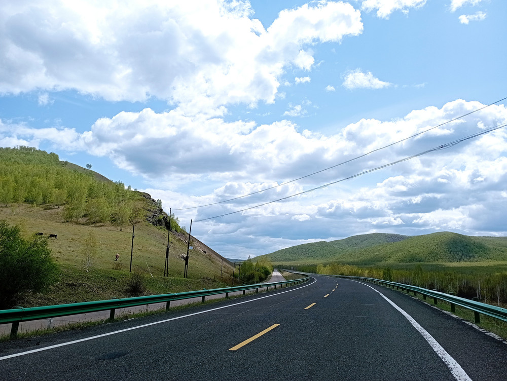 吃完早饭,也没时间耽误了,要往机场赶了。昨晚到恩和时已经天黑了,一路上风景看得不是很清楚,不过回程的时候,倒是看到了沿路的美景。草原与树林过渡地带,还有成片得白桦树林,白桦树汁好像还是大兴安岭得特产,之前买过一些,挺甜的。
