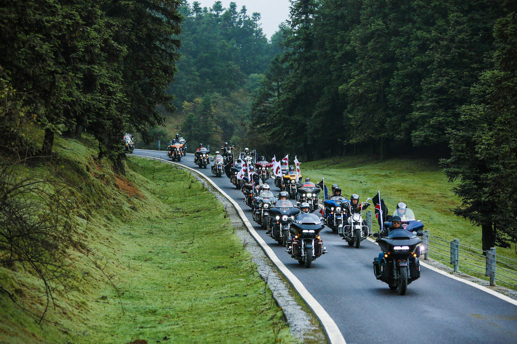 作为仙女山有史以来最大规模的骑行活动,共吸引了来自内蒙、唐山、深圳、湖南、北京、南京等30多个省市的超400名俱乐部发烧友参加,他们不惜跋涉千里,集结在仙女山,共同见证这一场盛宴。当300余辆颜值超高的哈雷车队同时登场,一出场便吸睛无数,引得在场围观游客纷纷拿出手机拍摄纪念。在世界自然遗产地的绝美风光中自由飞驰,感受天然氧吧的无拘无束;在旖旎的风景中上演一路狂飙,将骑士们无惧挑战、向往自由的摩托车精神衬托得淋漓尽致。