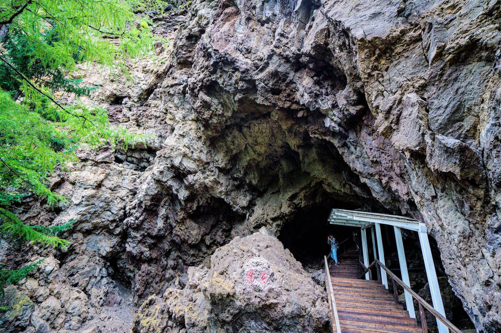万年之前,三次火山喷发后成就了人们眼前的美景。高大挺拔的树如剑般笔直地通向天空,一望而知是经历了许多岁月的老树。在茂盛的原始树林中行走,时常能看到隐藏在丛林中的火山口,整个景区共有16个这样的洞穴,大小不一,深度不等。
