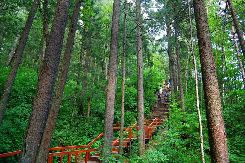 火山口国家森林公园位于张广才岭中段东坡、镜泊湖西北约50公里处。火山喷发后寸草不生、人迹罕至的景象给人们的印象太过深刻,让山中树木参天,溪水潺潺的样子显得尤其不真实。
