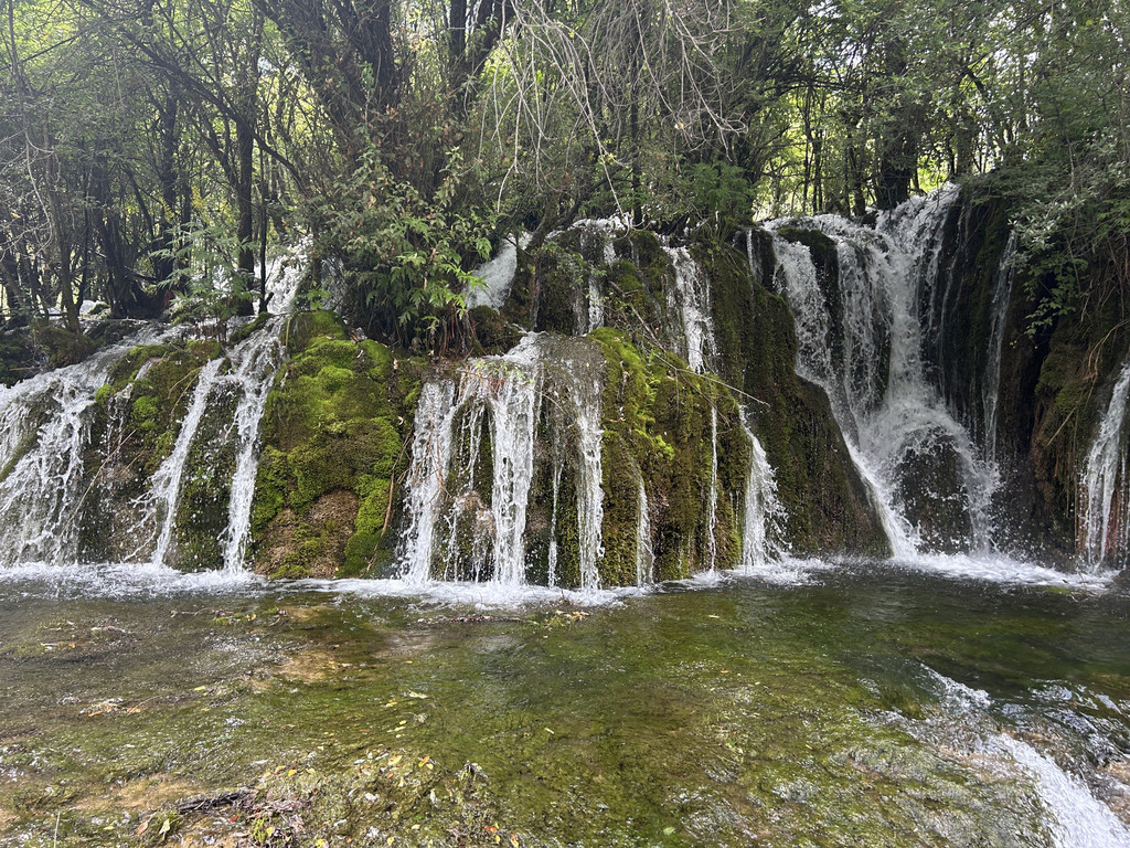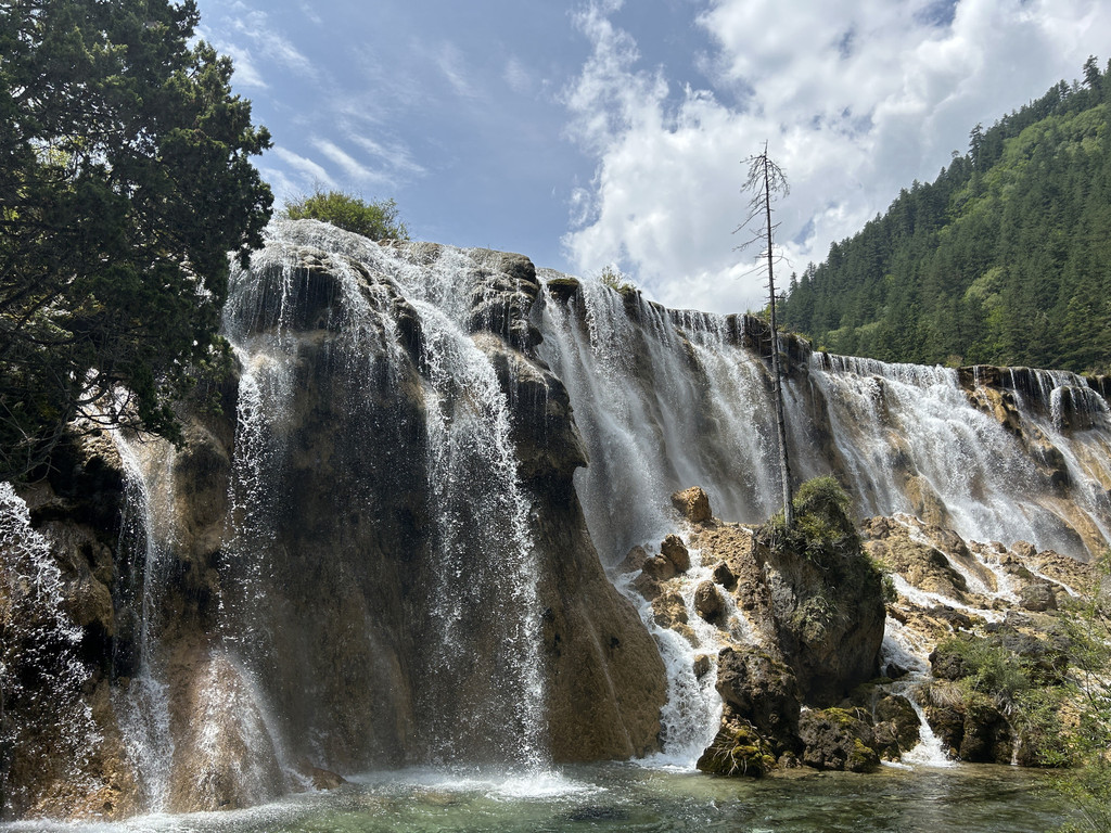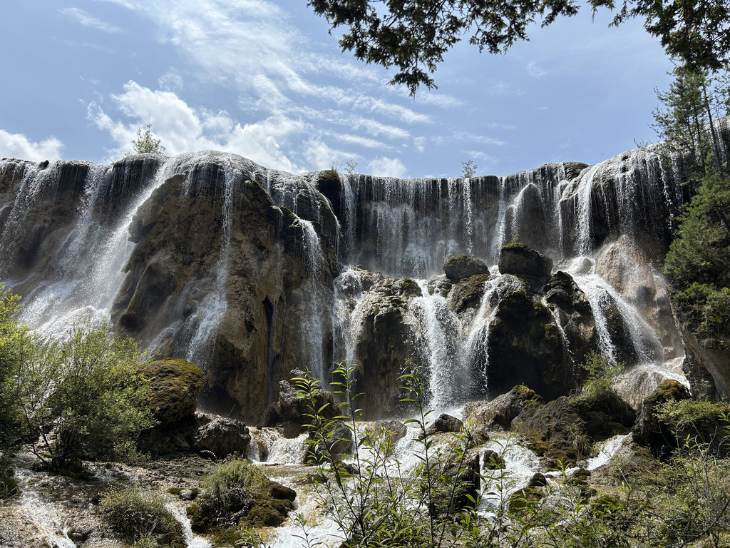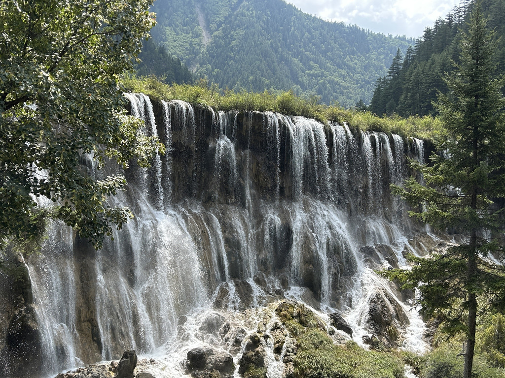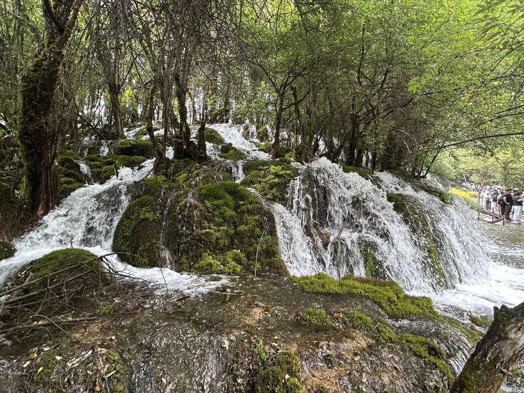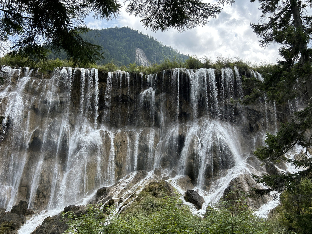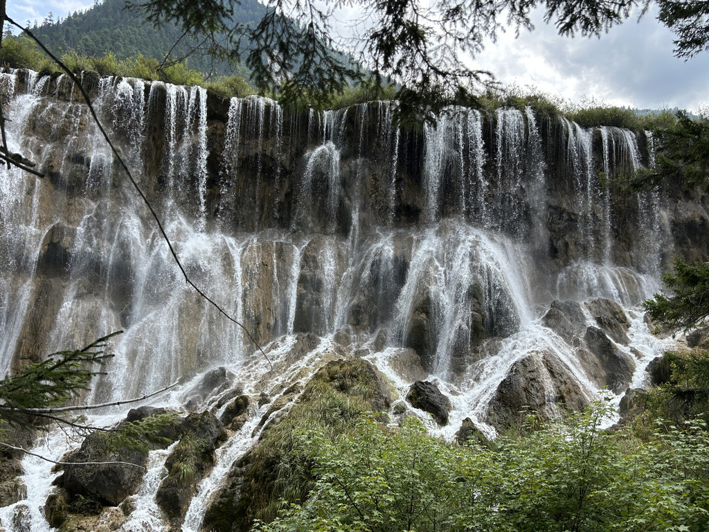 九寨沟的水动到极致的是珍珠滩了。它在五花海与镜海之间,一片世所罕见的钙华滩流。当我置身在这一片滩流之前,真是惊喜莫名。眼前的千折万折流水,千叠万叠急湍,则构成了无穷的自然之美的循环往复。
