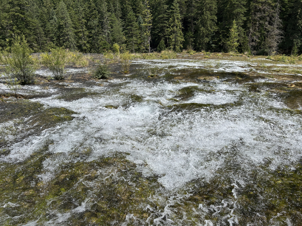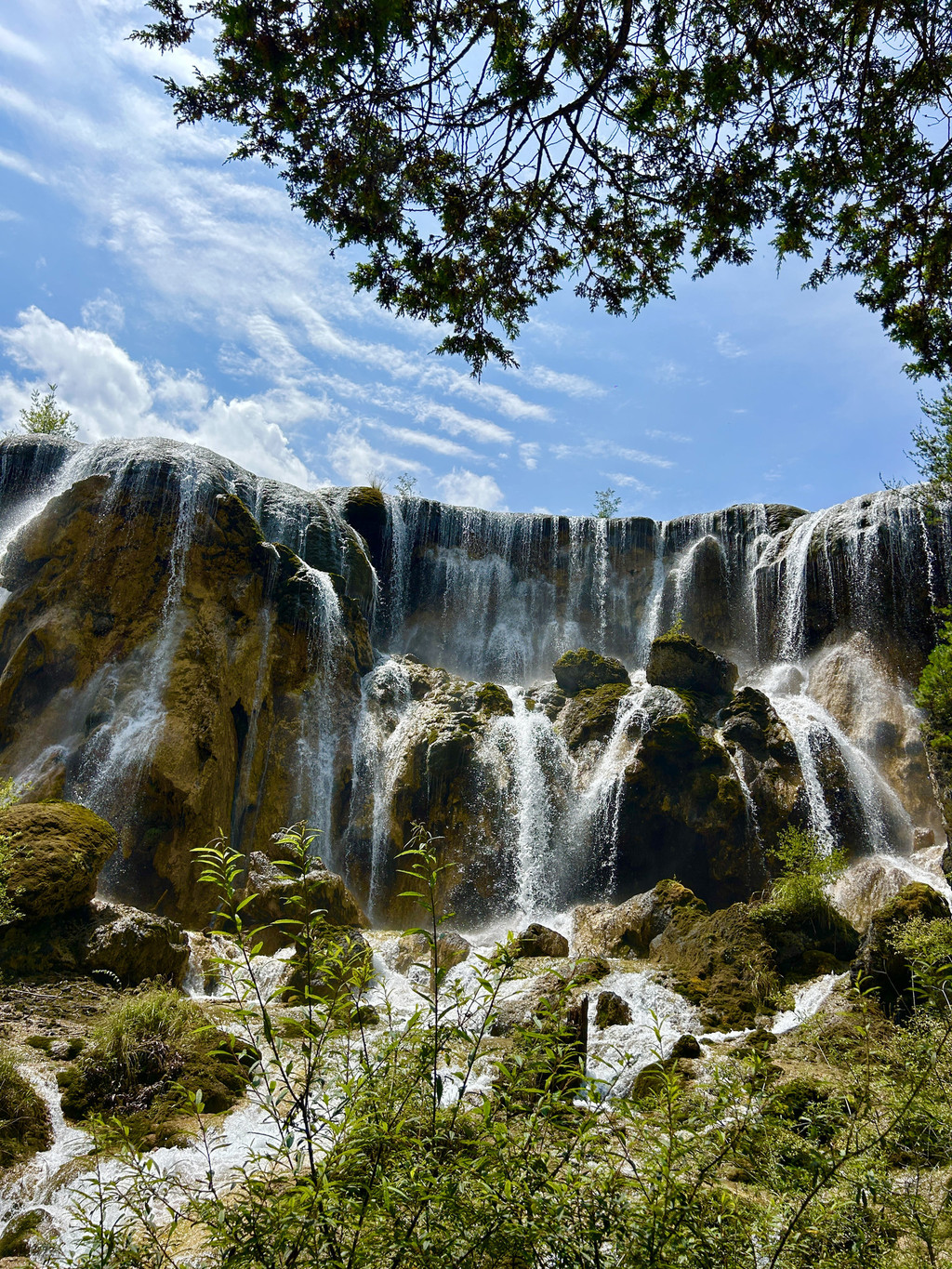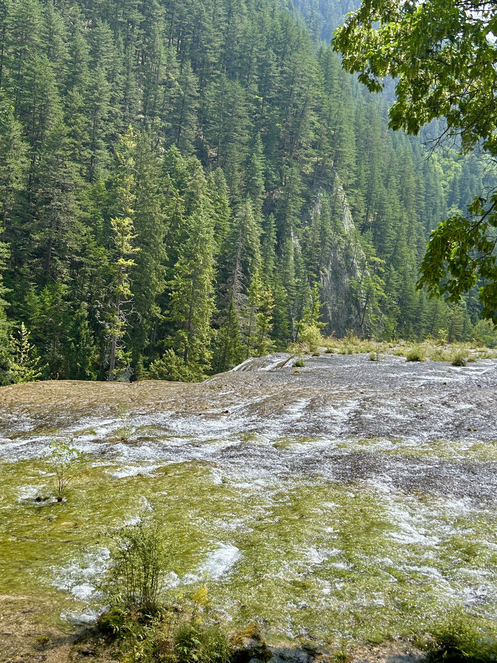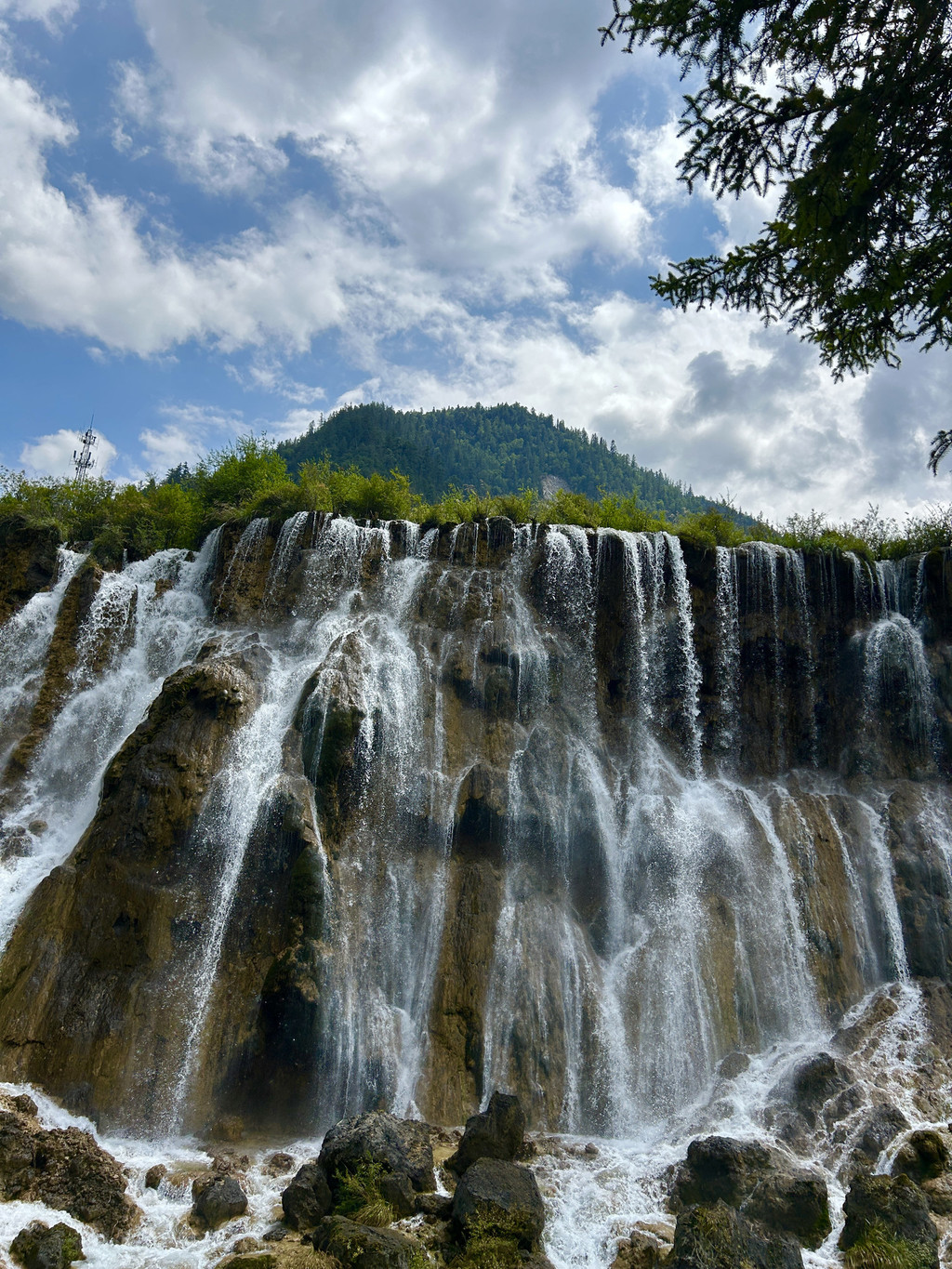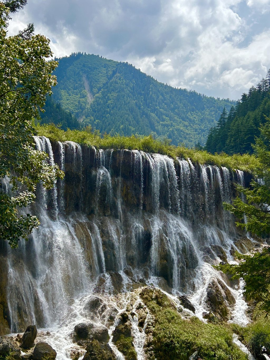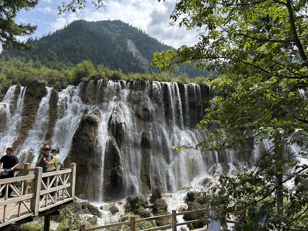 九寨沟的水动到极致的是珍珠滩了。它在五花海与镜海之间,一片世所罕见的钙华滩流。当我置身在这一片滩流之前,真是惊喜莫名。眼前的千折万折流水,千叠万叠急湍,则构成了无穷的自然之美的循环往复。