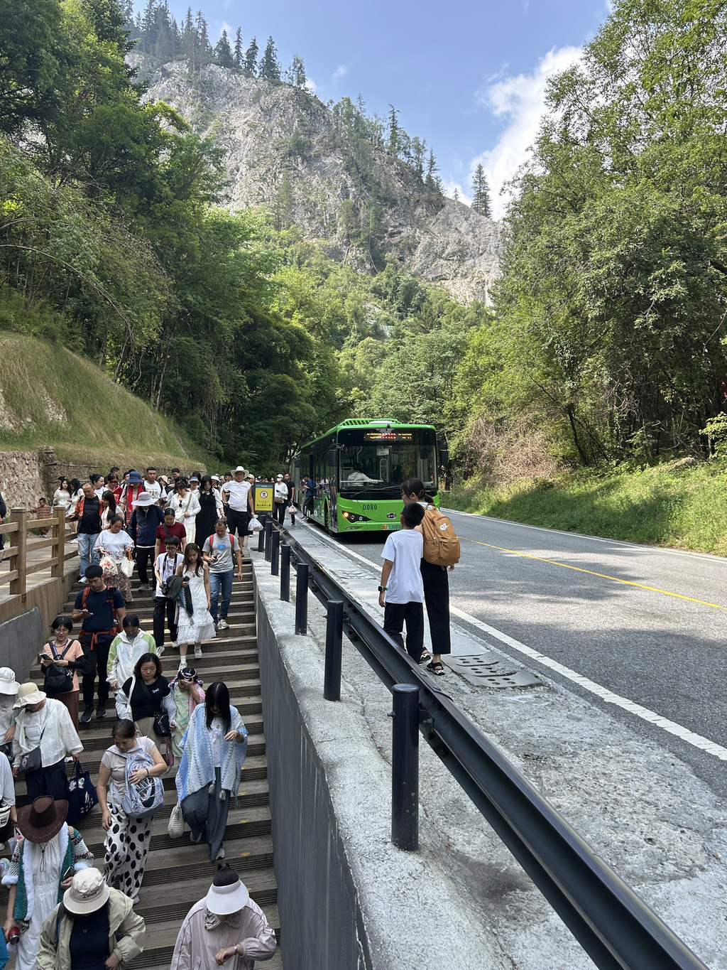 中午时分,在诺日朗中心站换乘观光车驶向九寨沟最大的一个海子--长海。