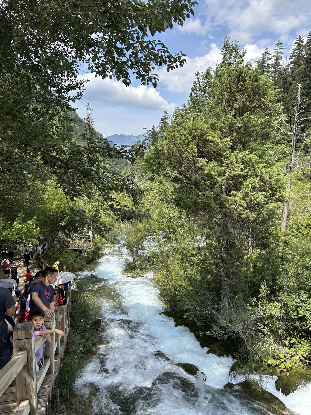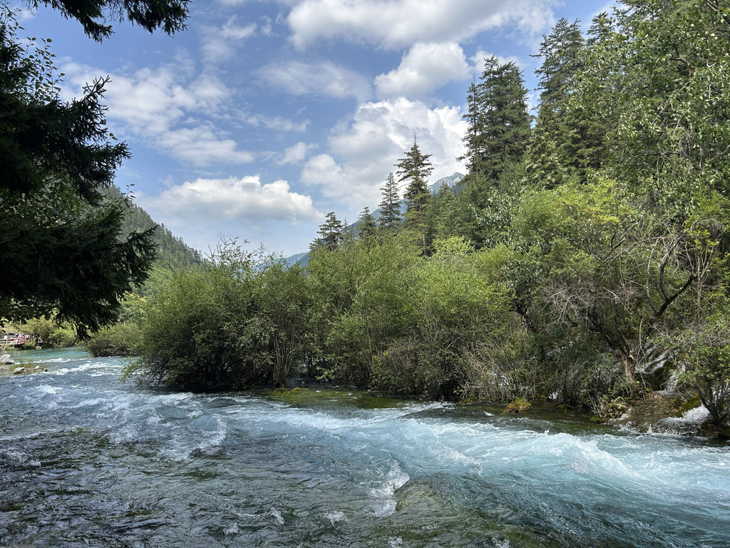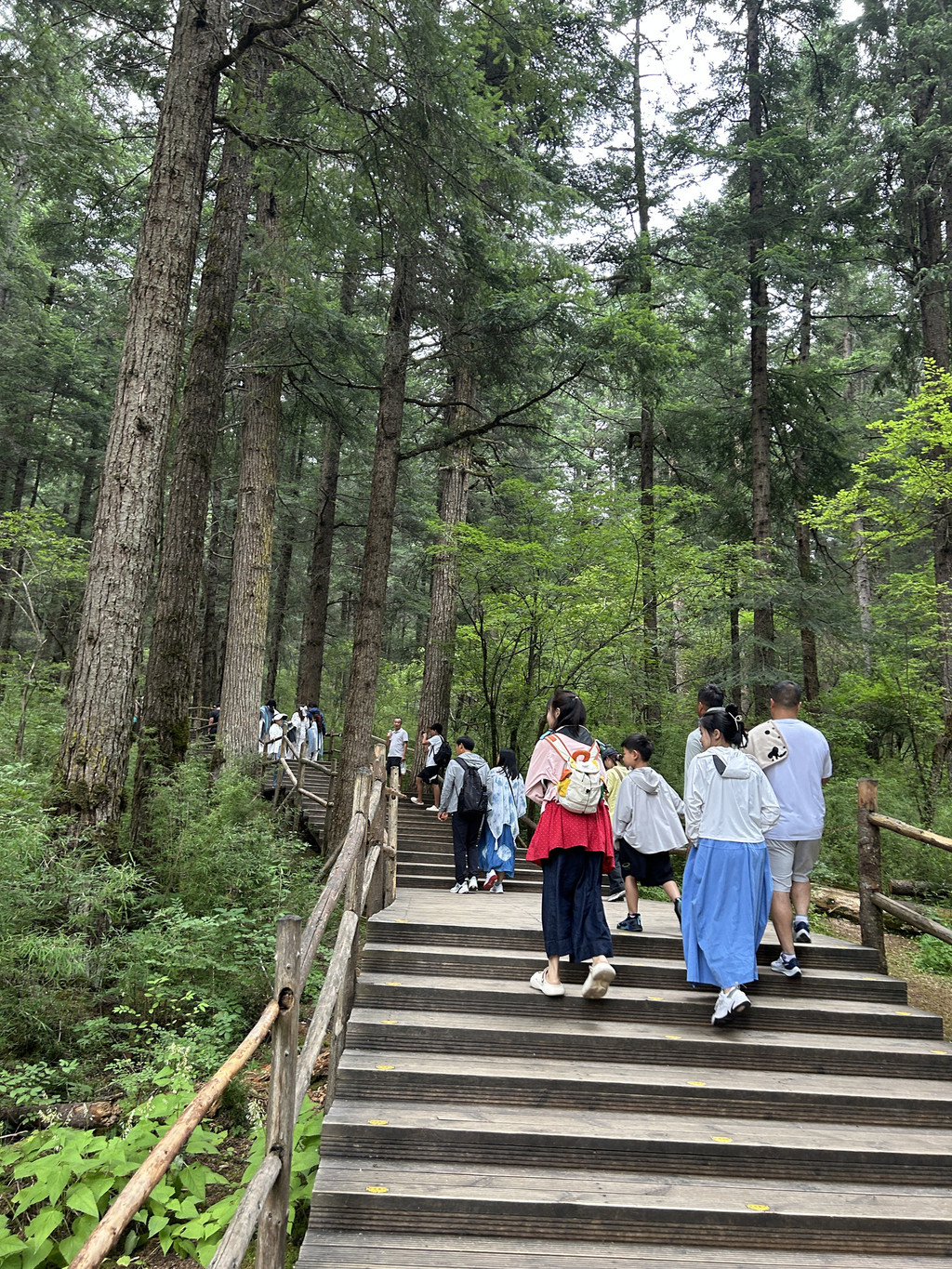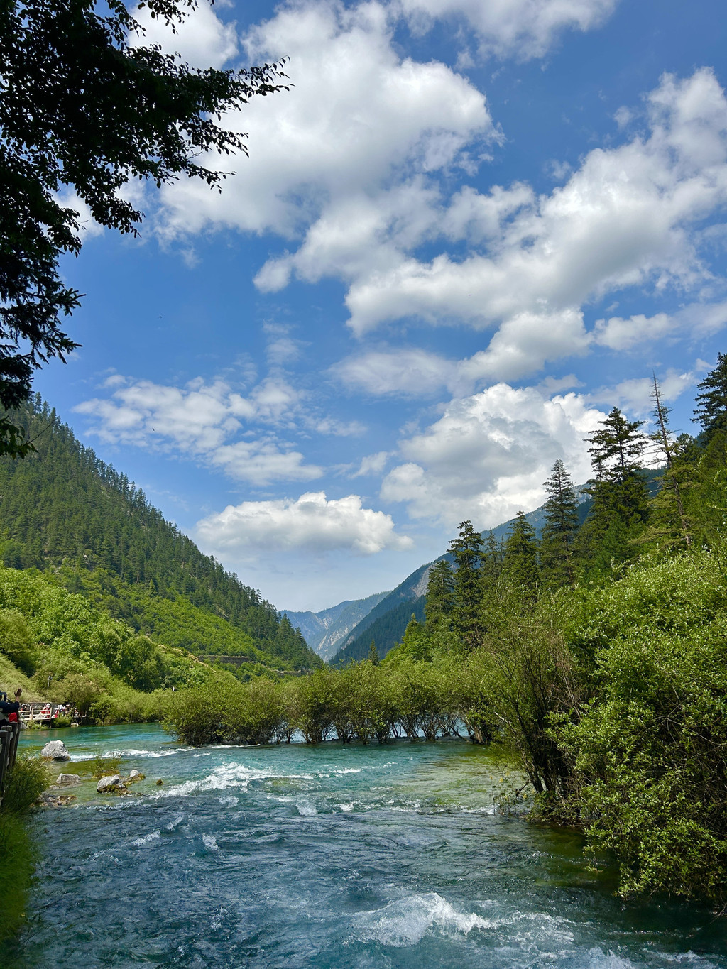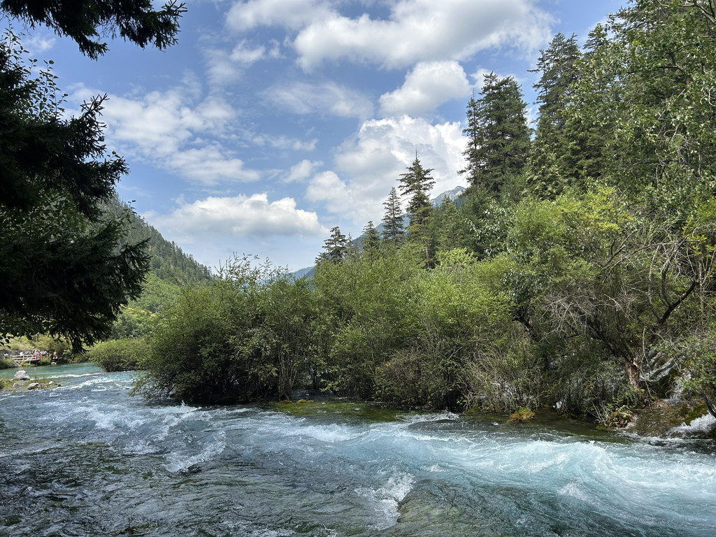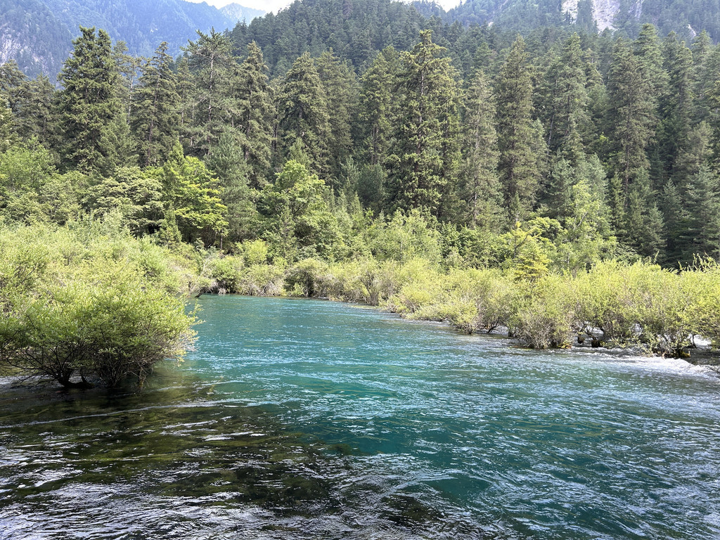 晨光中走进九寨沟,盛夏的山谷仿佛翠玉雕成的世界。观光车盘旋而上,窗外林木苍翠,时有溪流闪出碧色,一晃而过,仿佛钻进了一幅会流动的水彩画里。